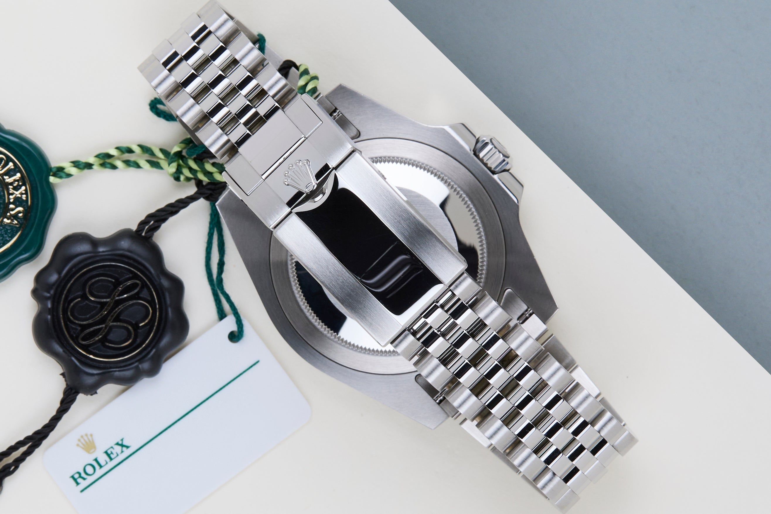 Este GMT-Master é feito de aço inoxidável e vem com uma pulseira Jubilee, que possui o Easylink. Esta extensão permite ao usuário aumentar ou diminuir a pulseira em 5 milímetros, melhorando o conforto e a usabilidade do relógio.