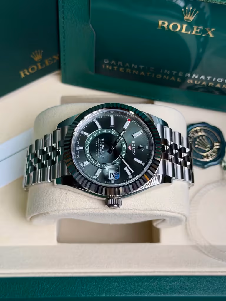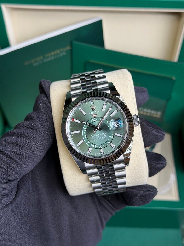Rolex 336934-0002 Sky-Dweller Aço Inoxidável - Ouro Branco / Verde / Jubilee