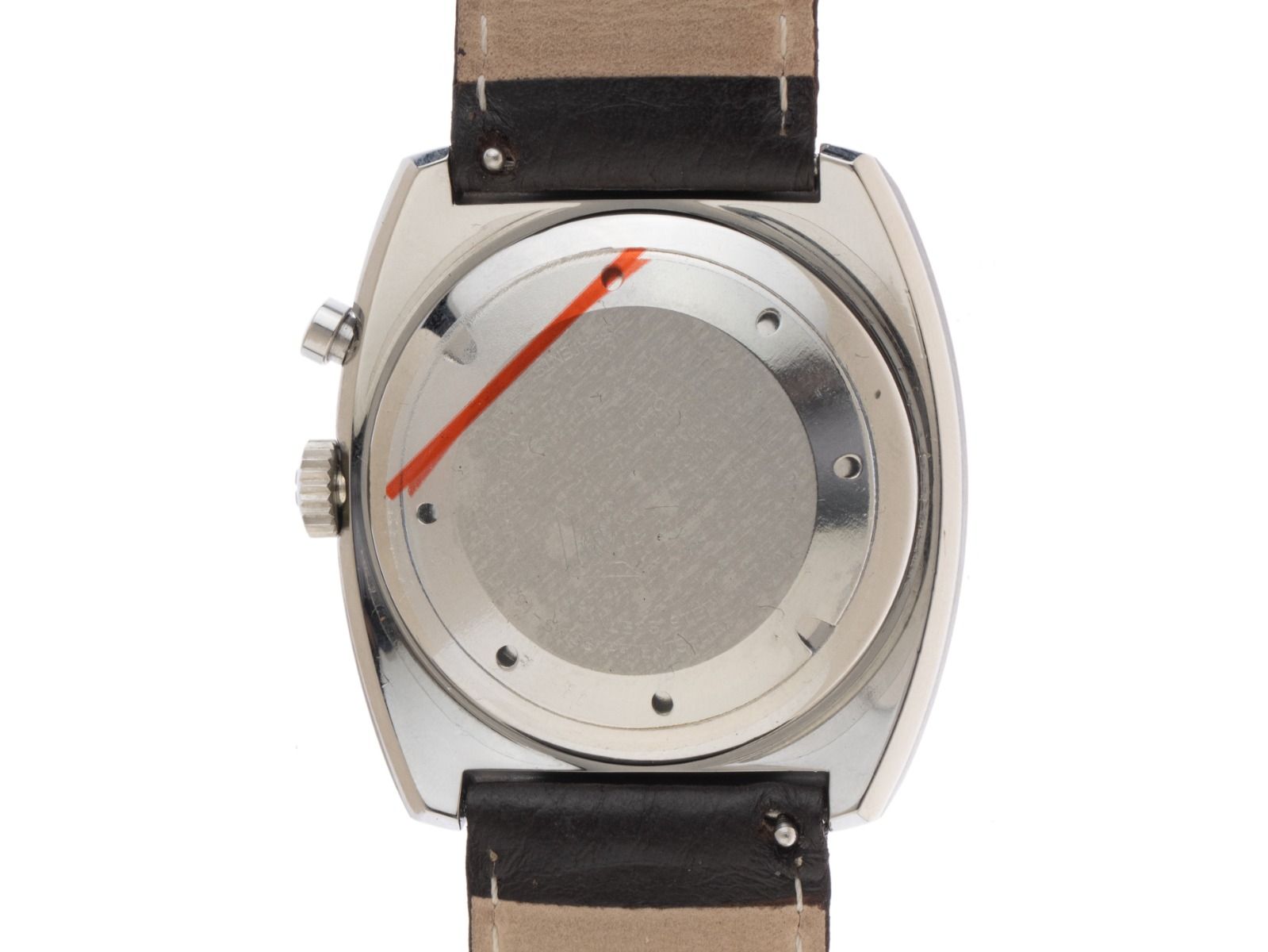 Caixa em aço inoxidável acetinado, dimensões da caixa sem coroa (C x L x A) 40 x 38 x 11,0mm. Pulseira de couro preto, largura da asa 22mm, fecho de pino em aço inoxidável. Mostrador prateado com índices aplicados e ponteiros em aço inoxidável. Movimento manual, função despertador, calibre MSR S2 com 17 pedras preciosas. Exibição de horas, minutos e segundos através de ponteiros centrais. Plexiglass. Coroa para ajuste do horário do despertador com logotipo do fabricante às 2 horas, coroa para ajuste da hora às 3 horas. Fundo em aço inoxidável rosqueado e gravado. Peso do relógio incluindo a pulseira 66g. Número de referência: S2326B, número da caixa: 929058/93XXX, ano de fabricação: 1970, ID: KT157920000925H-3400, número do artigo: 10000081857. Com controle de precisão e completa restauração externa de setembro de 2025. Com extrato do Watchregister de setembro de 2025, Certificado The Watch Register / sem registro (Banco de dados internacional para relógios perdidos ou roubados). Muito bom estado. Prazo de entrega imediato.