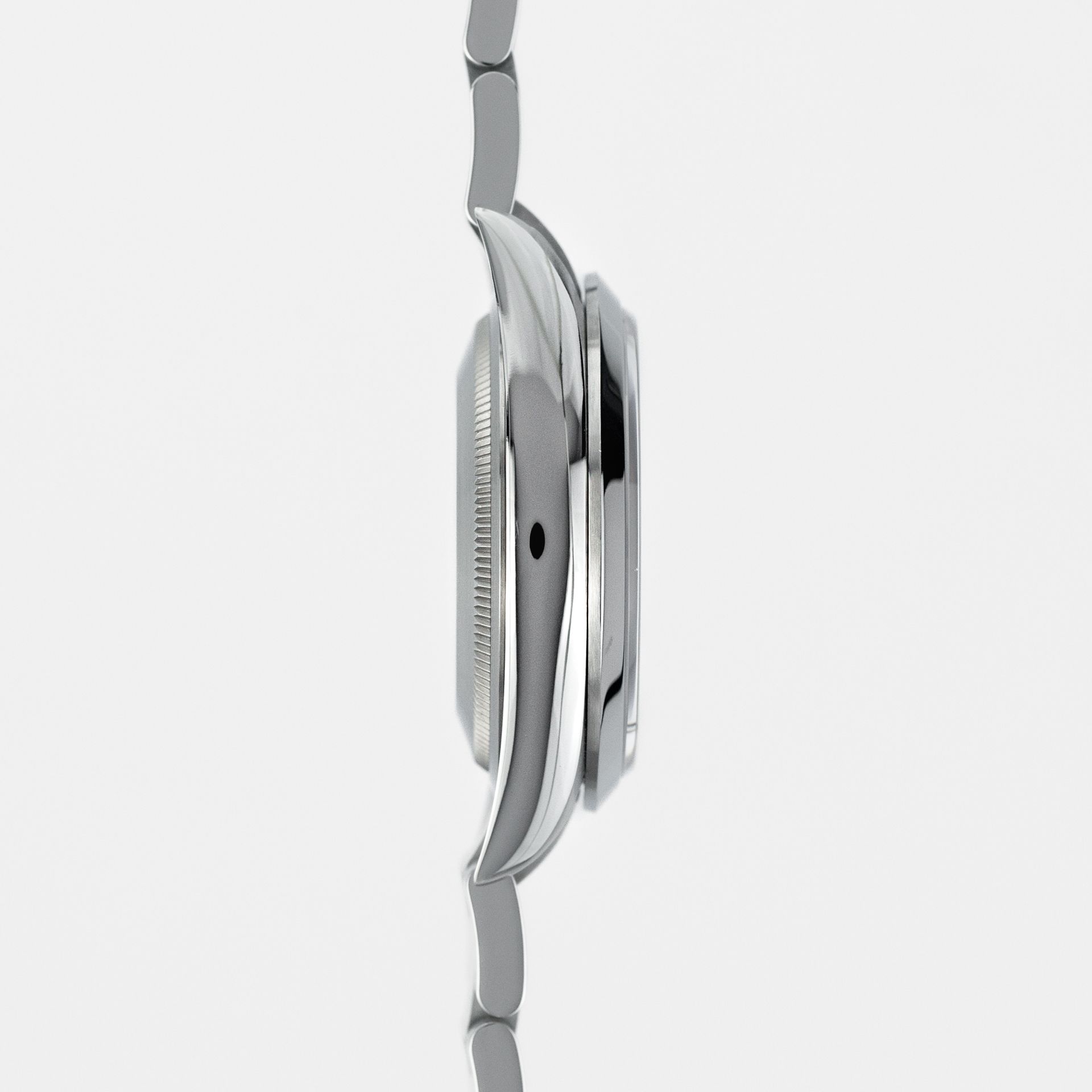Indeed, the detail of this timepiece (as with all the modern Rolexes we have had the opportunity to examine) is impressive. Starting with the incredible dial (by the way, this is one of the few Rolex models offered only in a black version) which at certain angles seems to be absent - from which the overall impression is as if the hands and markers are "suspended" in the air in some kind of weightlessness, and the markers and hands are made of white gold (which is standard for the brand's modern models). The iconic "3", "6" and "9", also crafted from polished white gold, only reinforce the overall elegance of the model and enhance its overall presentation. Moving on to the incredible sapphire crystal – in this case, the brand's highest grade of sapphire is used, which has allowed the overall height of the watch to be reduced compared to its predecessors, achieving an impressive just 11.5 mm! Of course, separate attention must be paid to the case and bezel – an incredible combination of brushed highest grade 904L steel with faceted polished edges and details in places (as you know, Rolex pays special attention to the steel used and for this purpose has its own foundries for its production!). And of course, the bracelet, or whatever you may call it – as can be expected from a Rolex, it is truly good, in this case it is a classic Oyster bracelet – with micro-adjustment.