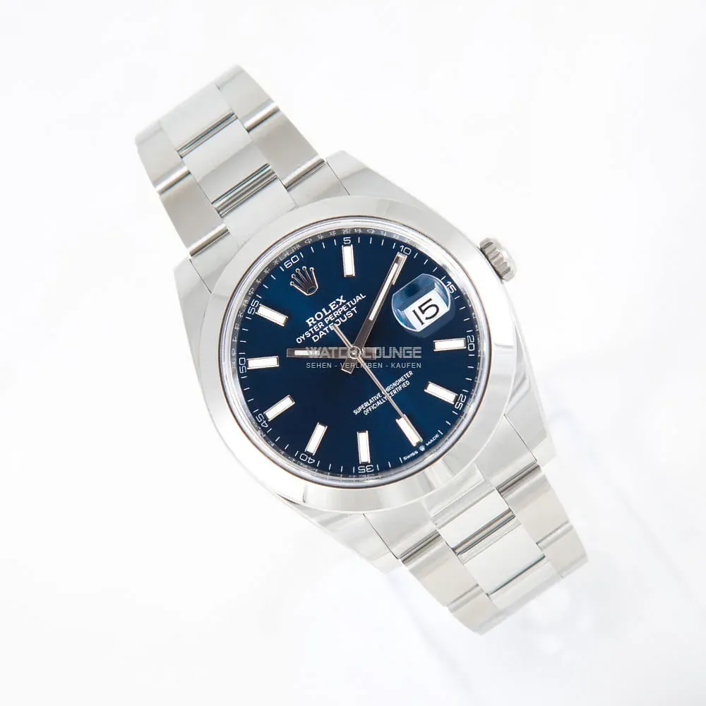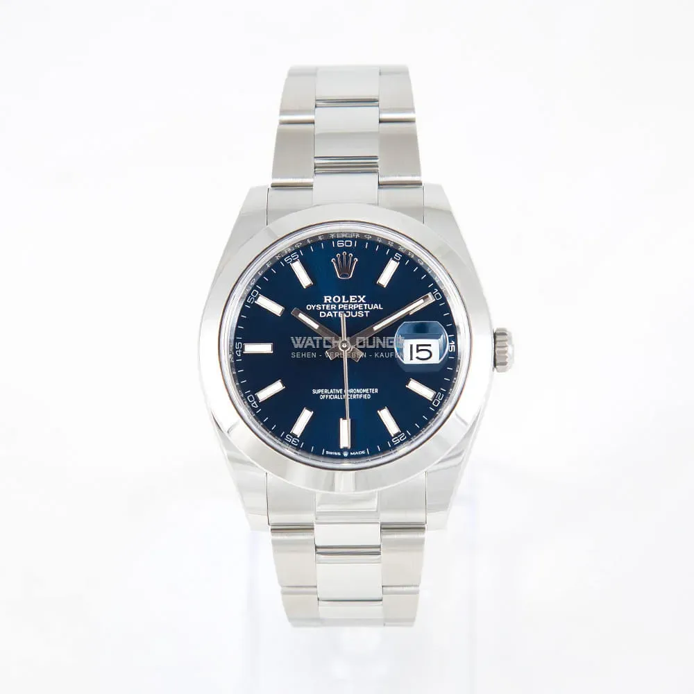 Original Rolex Datejust 41 with blue index dial.Watch is in perfect condition with box and papers.