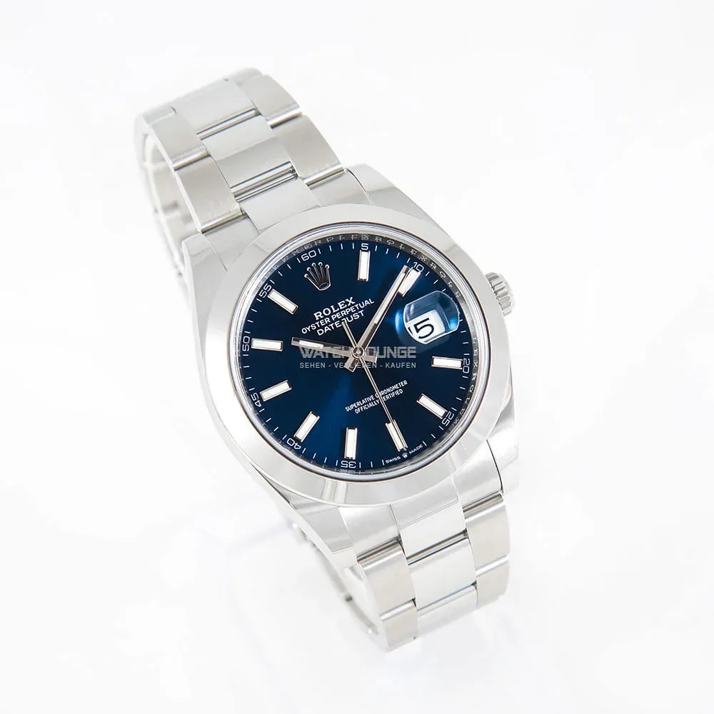 Rolex Datejust 41 original com mostrador azul e índices.