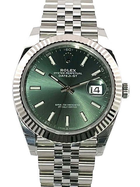 Rolex Datejust 41 Stainless Steel White Gold 126334 Mint Green Jubile Band