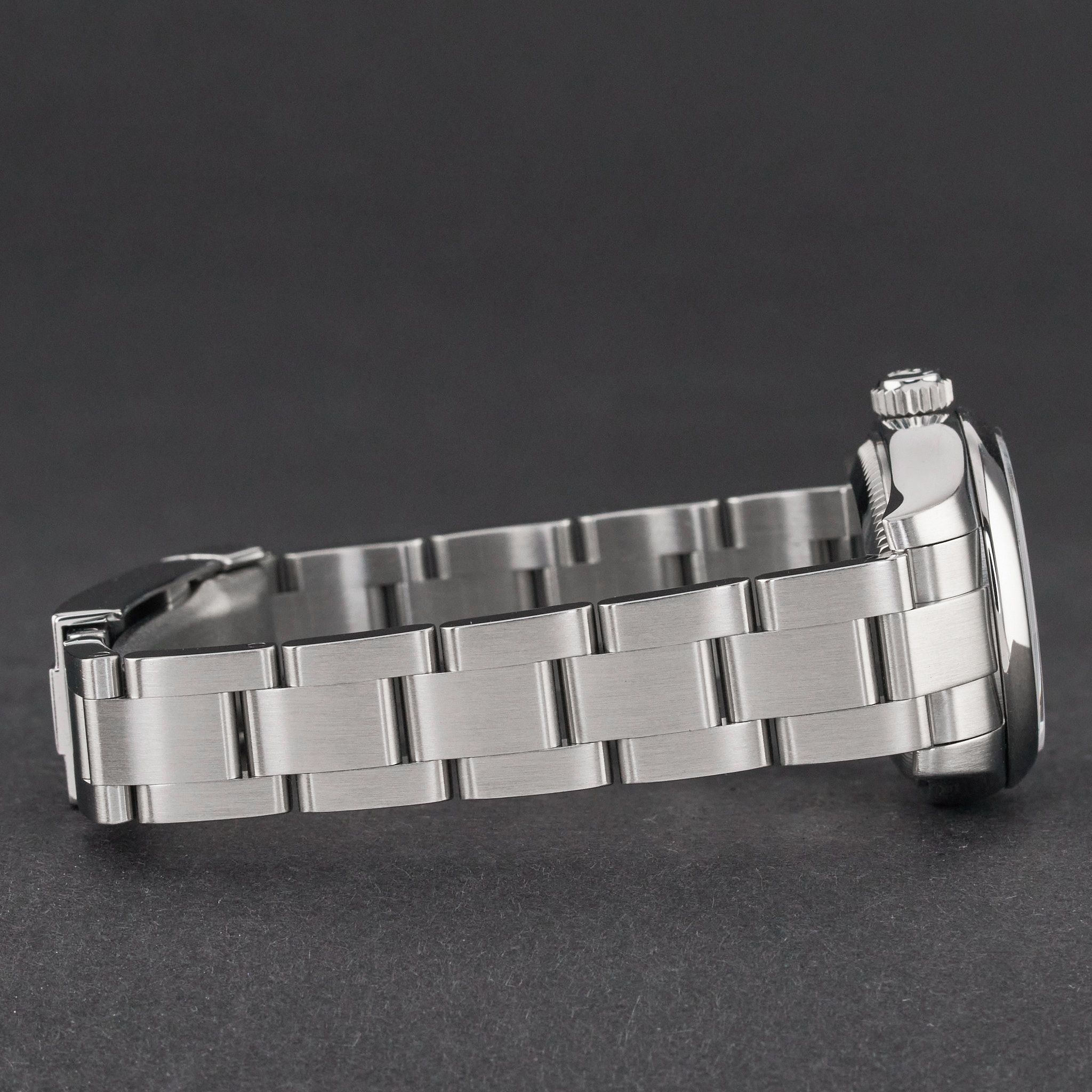 - Sinais leves de uso como micro-riscos ou pequenos riscos superficiais. A caixa, a luneta e a bracelete mantêm arestas definidas e a forma original. Pode ter sido polido profissionalmente sem afetar os contornos originais. Totalmente funcional mecanicamente.