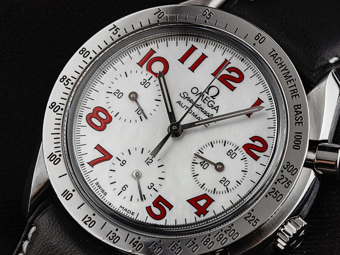 Omega Speedmaster Reduced Aço Pérola Automático Cronógrafo Pulseira de Couro