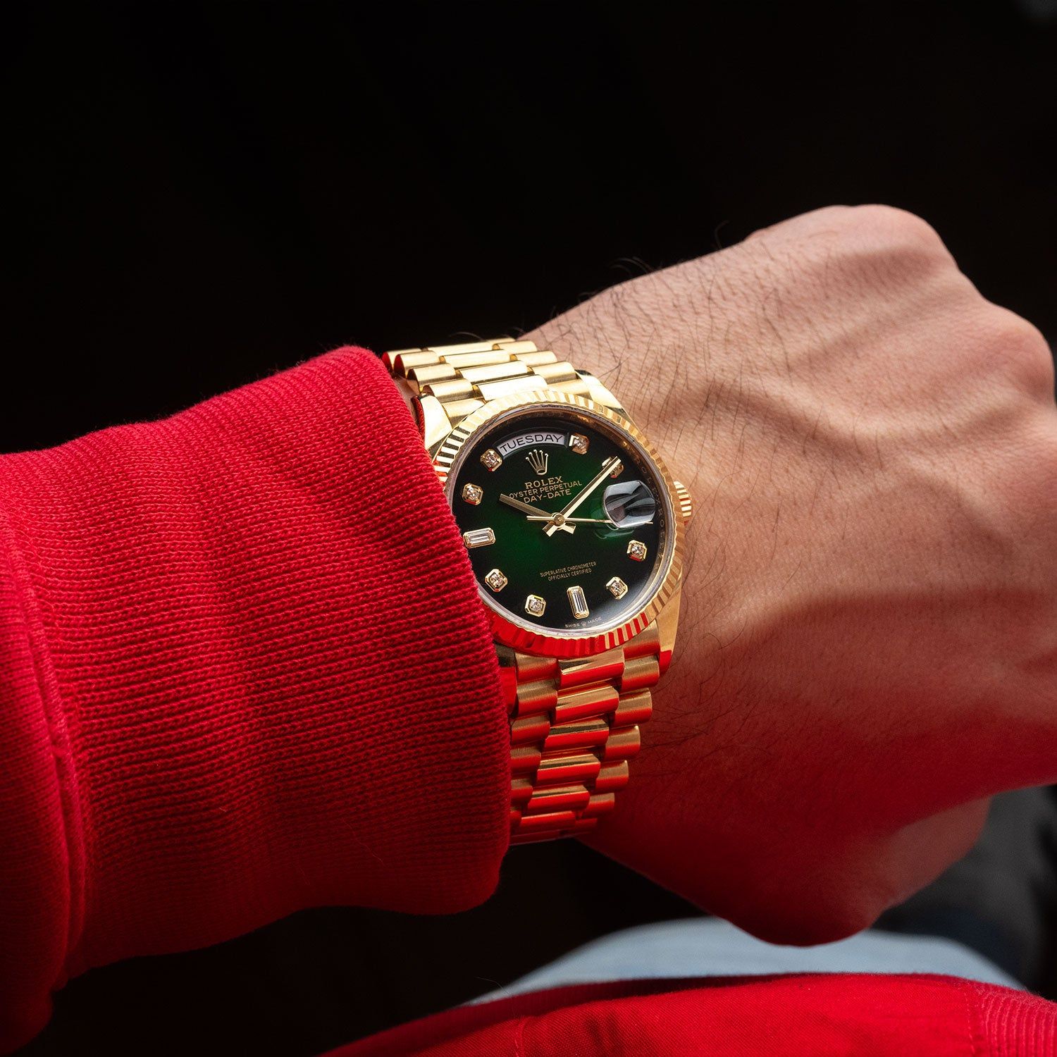 Day-Date 36mm Verde Ombre com Mostrador de Diamantes Baguete 2018 - 128238