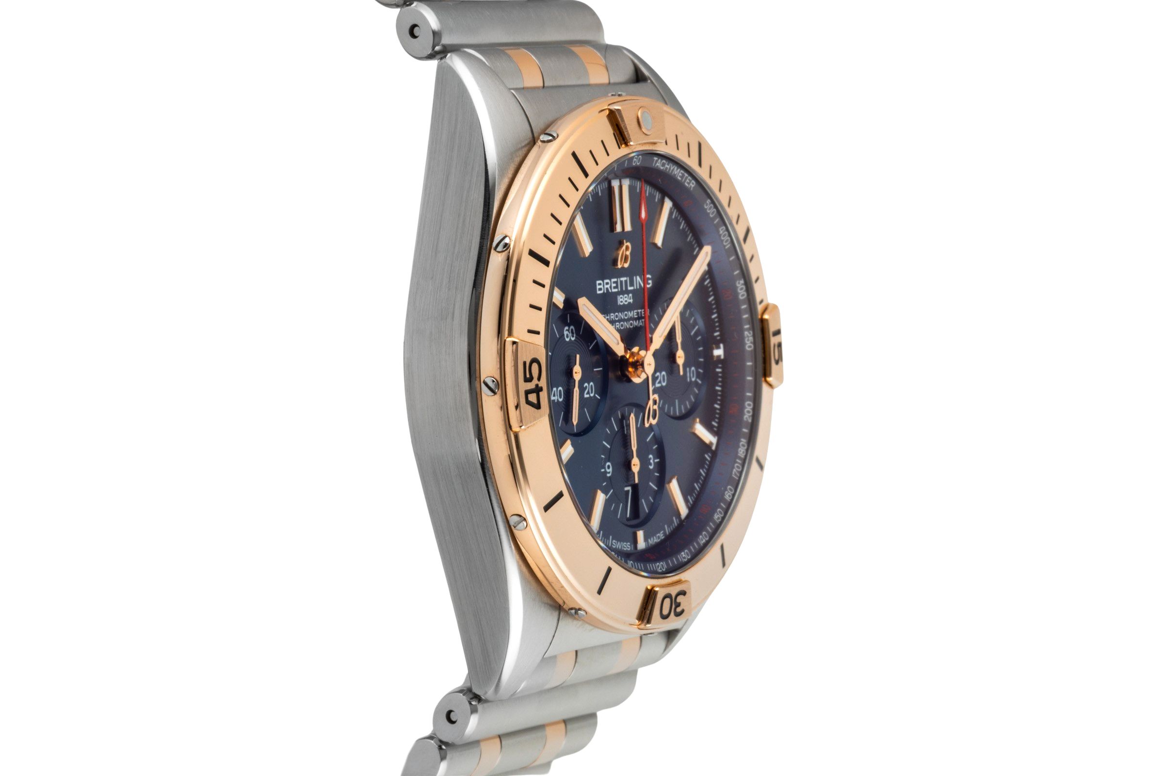 Alternative title: Breitling UB0134101C1U1 Chronomat B01 42 Stainless Steel / Red Gold / Blue / Rouleaux; Breitling Chronomat Chronograph Stahl / Gold Automatik Ref UB0134101C1U1 Papiere [2600506]