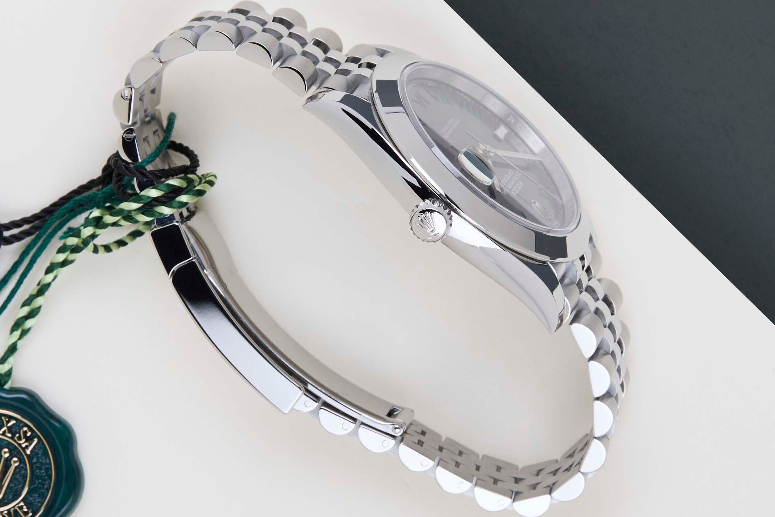 New & Unworn | Full Set | Including Rolex White Tag | Including International Rolex Warranty Until February 2031 Rolex introduced the original Datejust in 1945 to celebrate the company's 40th anniversary. Due to the various case sizes and materials, the Datejust has been ingrained in Rolex's history and remains incredibly popular for 75 years.This Rolex Datejust 41 'Wimbledon Dial - Jubilee' was sold for the first time in February 2026.This Datejust is made of stainless steel and is fitted with an Oyster bracelet, which is equipped with the Easylink. This extension, allows the wearer to either extend or shorten the bracelet by 5 millimetres, improving the wearability and usability of the watch.This Rolex Datejust 41 is in New & Unworn Condition and comes with the original Rolex Warranty Card and box. Furthermore, the watch still has International Rolex Warranty until February 2031.