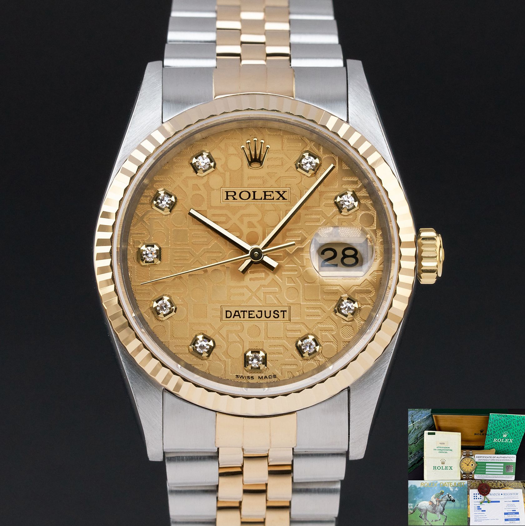 Rolex Datejust 36 Rolex Datejust, 16233, 36mm, 1996, Two-Tone, Champagne Jubilee Big Diamond dial, Fullset, 1y warranty