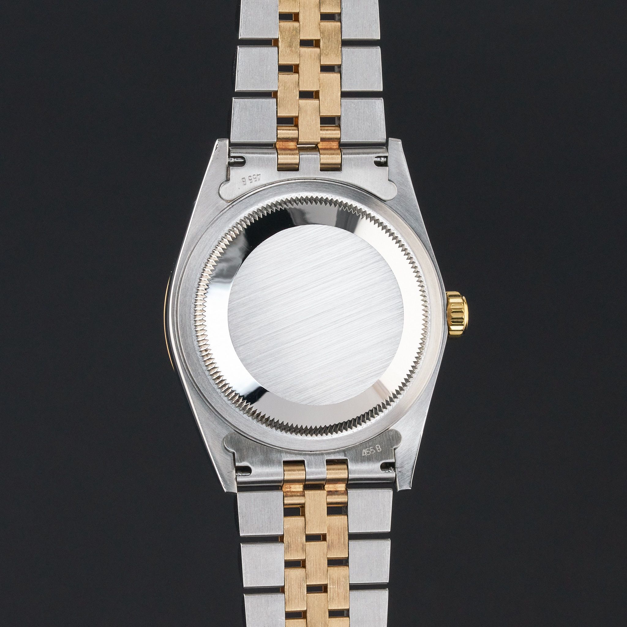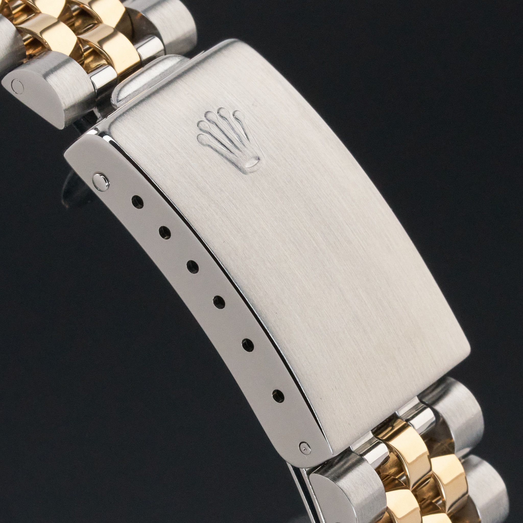 This Rolex Datejust 16233 features a Champagne jubilee big diamond dial and is crafted from 18K yellow gold and stainless steel, with a production year of 1996.