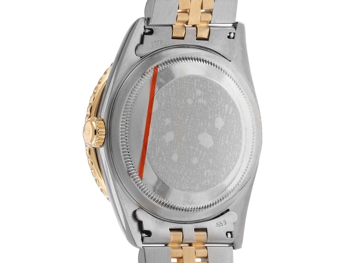 Rolex Datejust Turn-O-Graph Stahl 18kt Gelbgold Automatik Armband JubiléGehäuse Edelstahl, poliert und satiniert, Gehäusedurchmesser ohne Krone 36mm, Gehäusehöhe 12,0mm. Lünette 18kt Gelbgold poliert und geriffelt mit 60-Minuten Skala, beidseitig drehbar. Armband Jubilé 18kt Gelbgold / Edelstahl poliert und satiniert, Faltschließe mit Hersteller-Logo. Zifferblatt champagnerfarben mit aufgesetzten gelbgoldenen Indexen und gelbgoldenen Zeigern. Uhrwerk Automatik, Chronometer, Rolex Manufakturkaliber 3135 mit 31 Edelsteinen. Anzeige von Stunde, Minute und Sekunde über Zeiger aus der Mitte mit Sekundenstopp zur sekundengenauen Einstellung der Uhrzeit, Datumsanzeige mit Schnellverstellung unter Glaslupe bei 3 Uhr. Saphirglas kratzfest. Krone verschraubbar mit Hersteller-Logo. Boden Edelstahl verschraubt. Gewicht der Uhr inklusive Armband 100g, Länge des Armbandes inklusive Gehäuse 180mm. Referenznummer: 16263, Gehäusenummer: X329XXX, Baujahr: 1991, ID: P250690000226H-8300, Artikelnummer: 10000084776. Mit Gangkontrolle und kompletter äußerlicher Aufarbeitung von Februar 2026. Original Rolex Box sowie Beschreibung, Übersetzungsheft, Rolex Chronometer-Siegel, Tag und Watchregister Auszug von Februar 2026, The Watch Register Zertifikat / ohne Eintrag (Internationale Datenbank für verlorene oder gestohlene Uhren). Kapitalanlage mit Wertsteigerungspotential, extrem seltenes Sammlerstück. Sehr guter Zustand. Lieferzeit sofort.