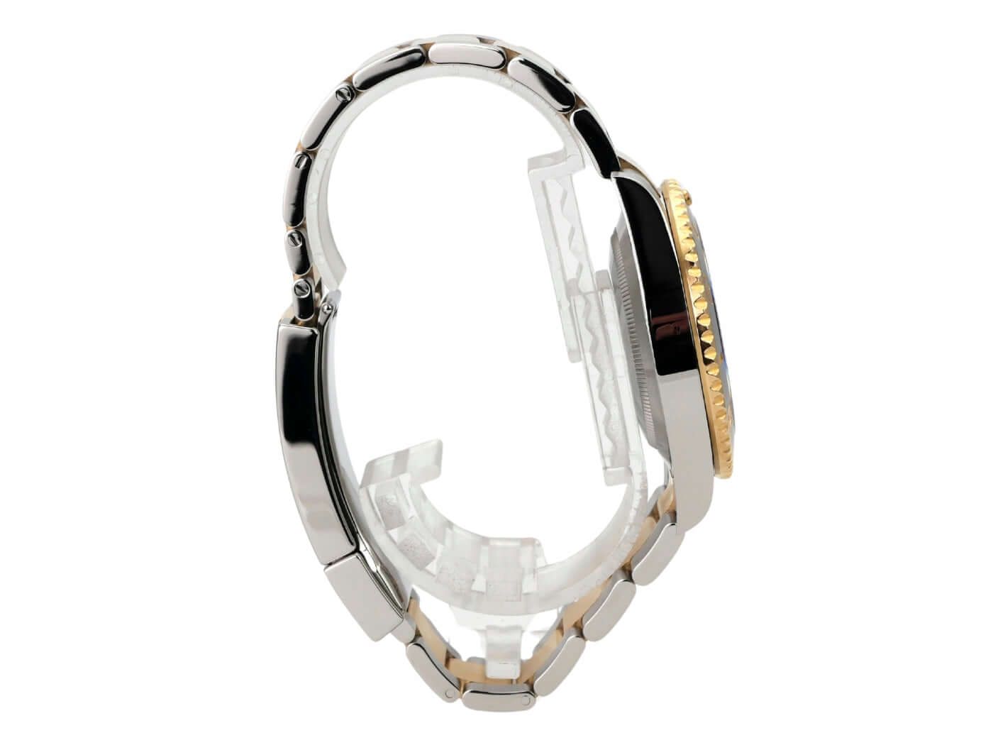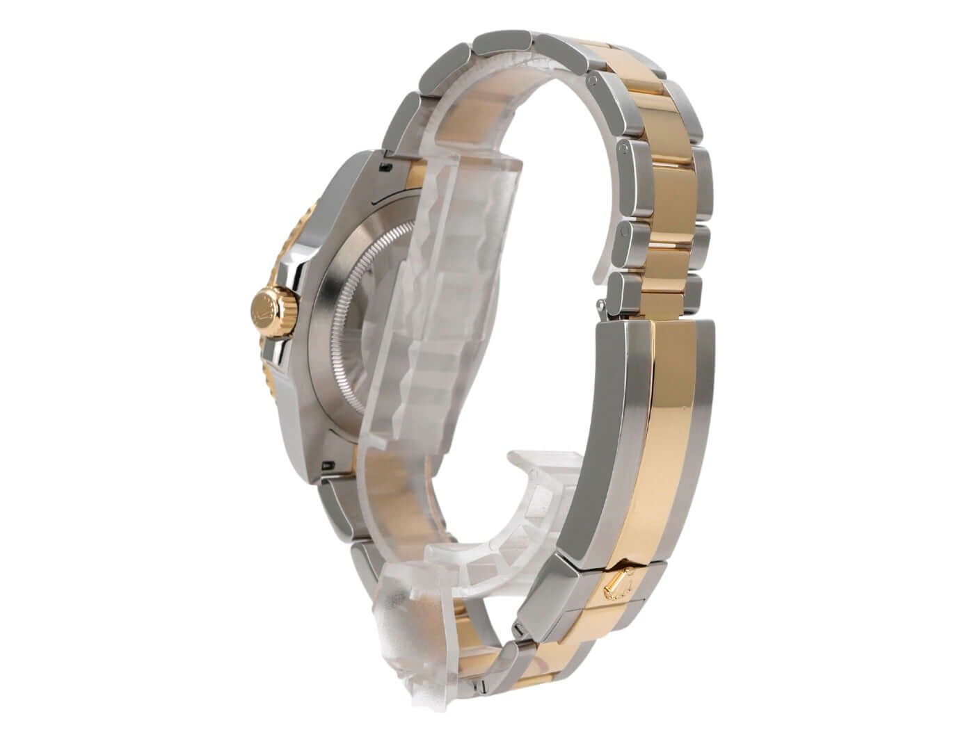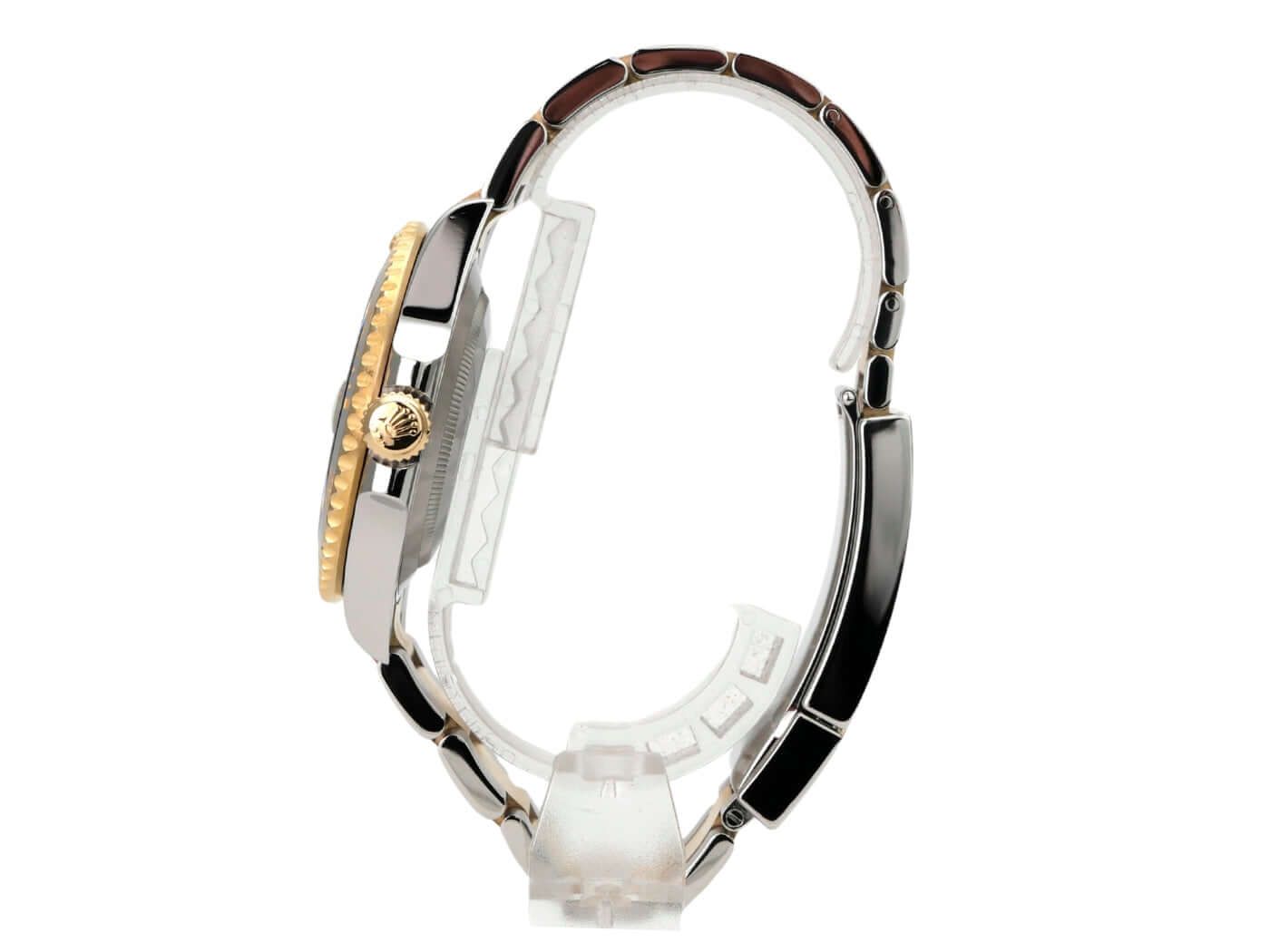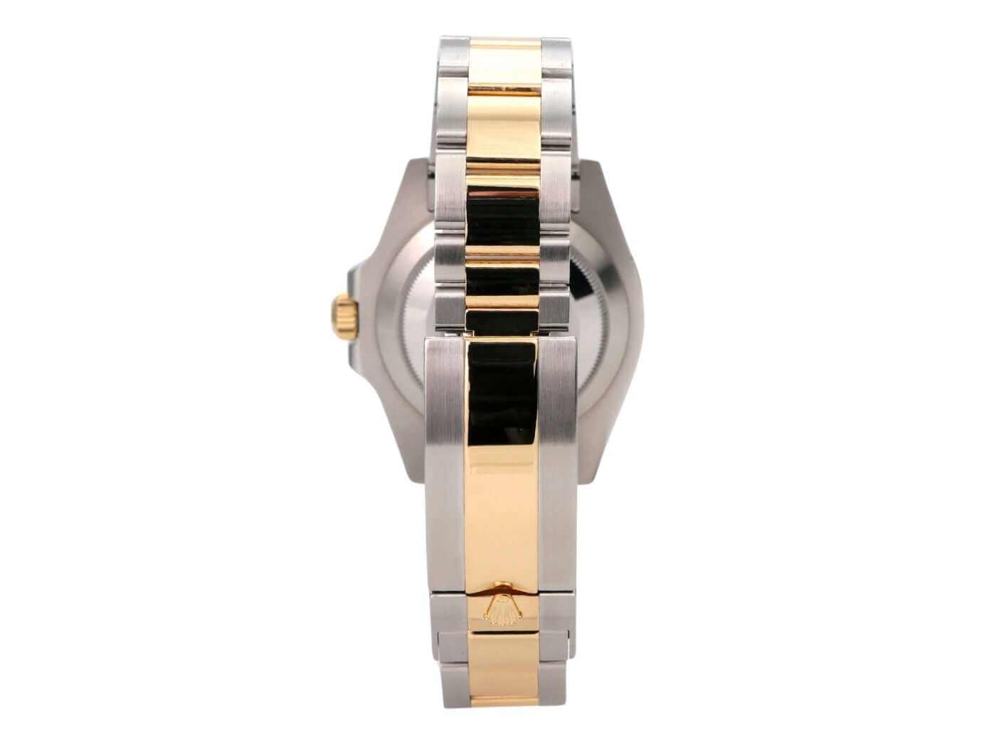 Caixa feita de aço inoxidável polido e acetinado, diâmetro da caixa de 41 mm, altura da caixa de 12,5 mm, bezel fluted em ouro amarelo 18 quilates com inserto em cerâmica preta, escala de 60 minutos e ponto luminoso, rotativo, bracelete Oyster em aço inoxidável / ouro amarelo 18 quilates polido e acetinado com fecho de segurança dobrável, mostrador preto com índices luminosos aplicados e pontos luminosos, ponteiros luminosos, movimento automático, calibre Rolex 3235 com 31 rubis, 28.800 A/h, reserva de marcha de 70 horas, display de data com ajuste rápido e lupa, cronômetro, cristal de safira, coroa rosqueada com protetores de coroa, fundo da caixa de aço inoxidável rosqueado, resistente à água até 30 bar.
