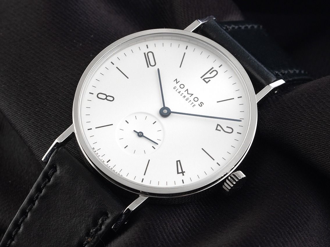 Nomos Glashütte Tangente Stahl Handaufzug Armband Leder