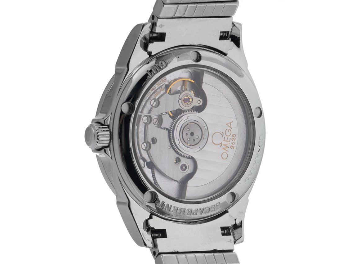 Caixa em aço inoxidável polido, diâmetro da caixa sem coroa 35mm, altura da caixa 11,3mm. Pulseira em aço inoxidável polido e acetinado, fecho de segurança duplo em aço inoxidável com logotipo do fabricante. Mostrador prateado com índices aplicados e ponteiros em aço inoxidável. Movimento automático, calibre Omega 2628 com 27 joias. Exibição de horas, minutos e segundos através de ponteiros centrais com parada de segundos para ajuste preciso da hora, exibição de data com ajuste rápido às 3 horas, GMT (segundo fuso horário) ajustável através de ponteiro central. Vidro de safira resistente a riscos. Coroa com proteção lateral e logotipo do fabricante. Fundo em aço inoxidável rosqueado e gravado com janela de vidro de safira. Peso do relógio incluindo a pulseira 124g, comprimento da pulseira incluindo a caixa 185mm. Número de referência: 4562.31.00, número da caixa: 80498XXX, ID: P268546000326H-6900, número do artigo: 10000085108. Com controle de precisão e completa restauração externa de março de 2026. Caixa Omega com embalagem externa e documentos de garantia de junho de 2015, além de extrato do Watchregister de março de 2026, Certificado do Watch Register / sem registro (Banco de dados internacional para relógios perdidos ou roubados), Full Set. Super oportunidade, peça de colecionador muito rara, quase não usada. Em muito bom estado. Prazo de entrega imediato.
