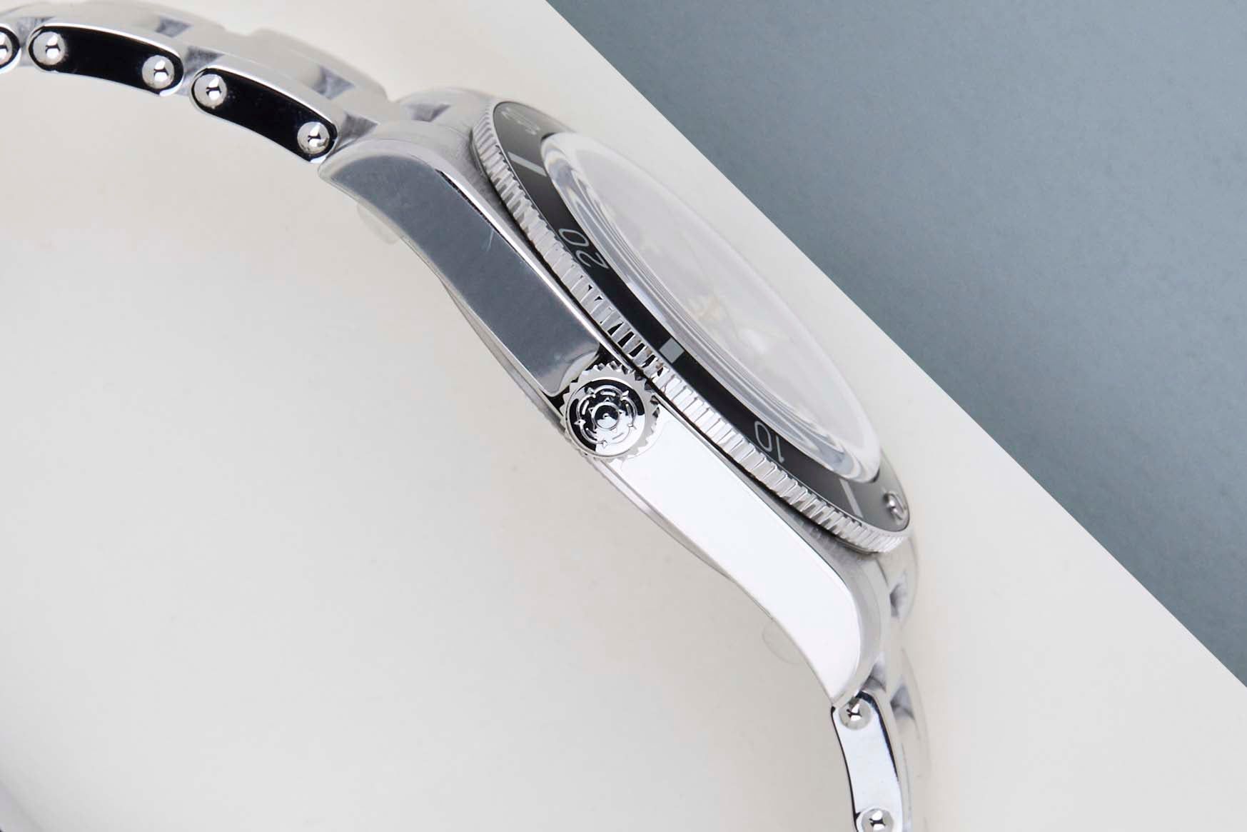- Sinais leves de uso como micro-riscos ou pequenos riscos superficiais. A caixa, a luneta e a bracelete mantêm arestas definidas e a forma original. Pode ter sido polido profissionalmente sem afetar os contornos originais. Totalmente funcional mecanicamente.