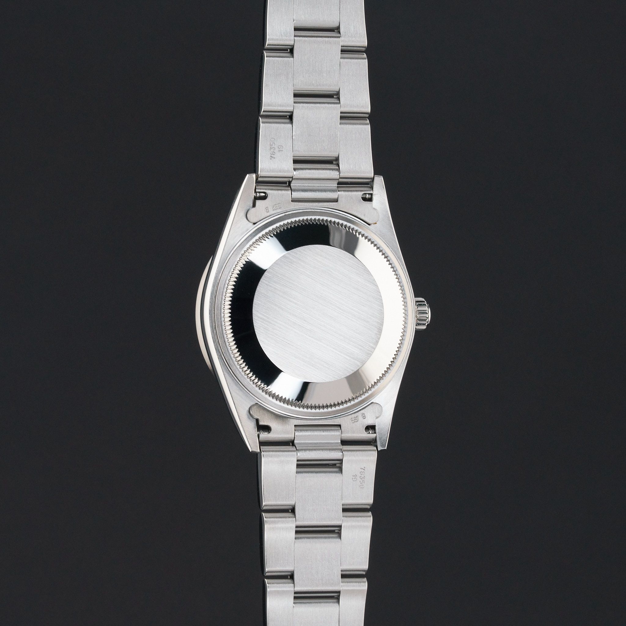 Este Rolex Air-King 14010 apresenta um mostrador Romano Branco e é feito de aço inoxidável, com ano de produção de 2001.