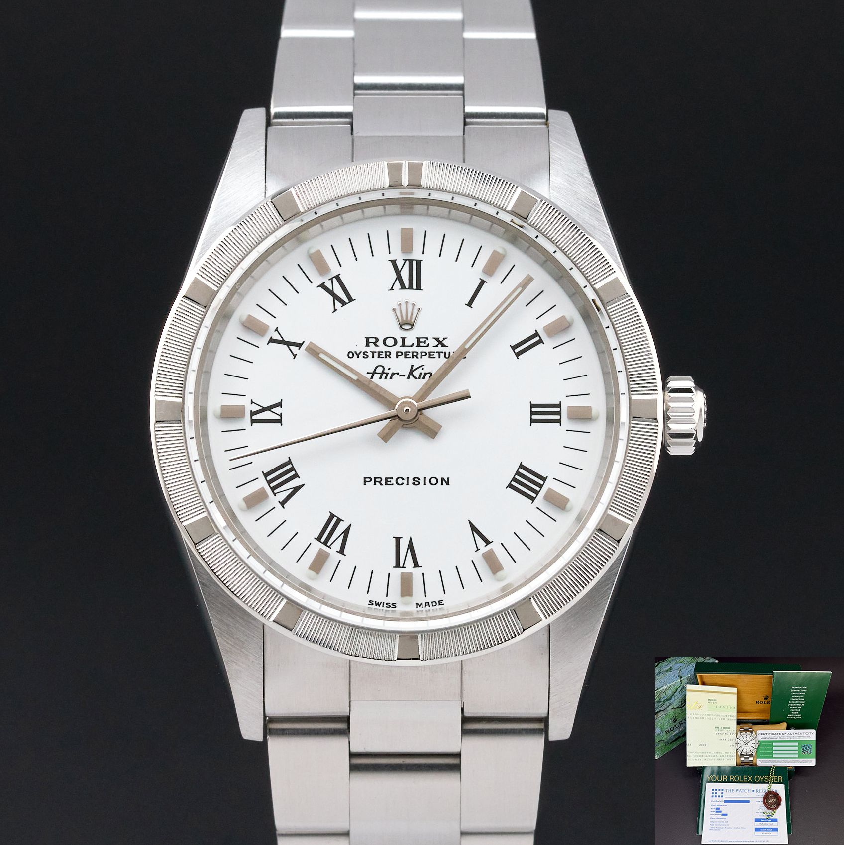 This Rolex Air-King 14010 features a White Roman dial and is crafted from stainless steel, with a production year of 2001.Case No: K34XXXX