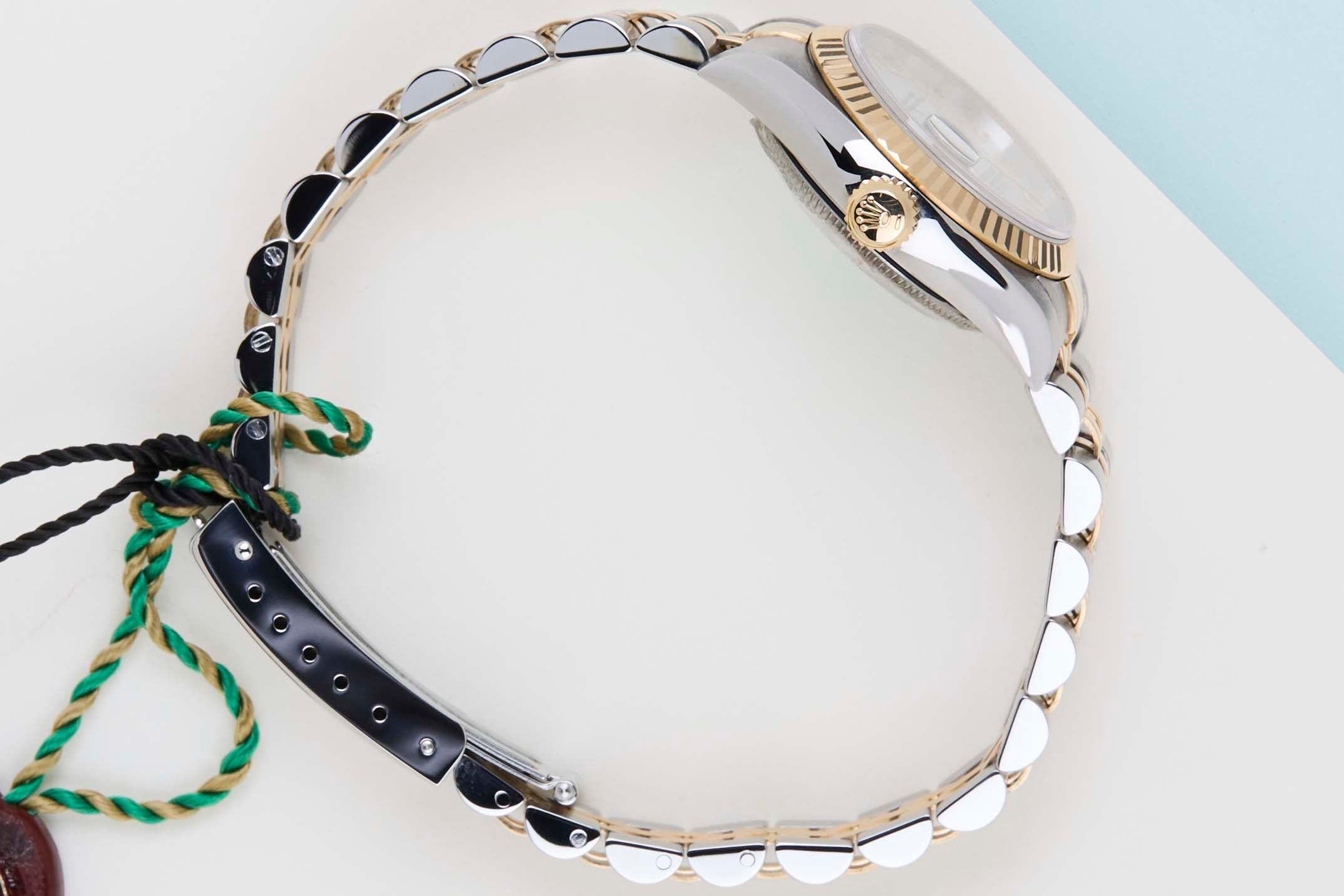 Rolex introduced the original Datejust in 1945 to celebrate the company's 40th anniversary. Due to the enormous success, Rolex released the first Lady-Datejust in 1957.This Datejust is made out of a combination of 18k Yellow Gold and stainless steel which is fitted with a Jubilee bracelet, and comes with a Mother of Pearl Diamond dial. Each mother of pearl dial is a unique piece and it is impossible to encounter an identical dial. Having the ability to change color, depending on the light, gives it a nature full of mystery and surprises.This Rolex Datejust 26 is in mint condition and comes with the original Rolex box. Furthermore, the watch has been serviced by our watchmaker, and therefore it comes with One Year of Steiner Warranty.