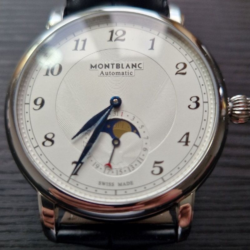 Like all of our watches, this Montblanc Star Legacy Moonphase Automatic Stainless Steel White Dial Black Leather Strap Date Mens Watch is brand new and comes in its original packaging.