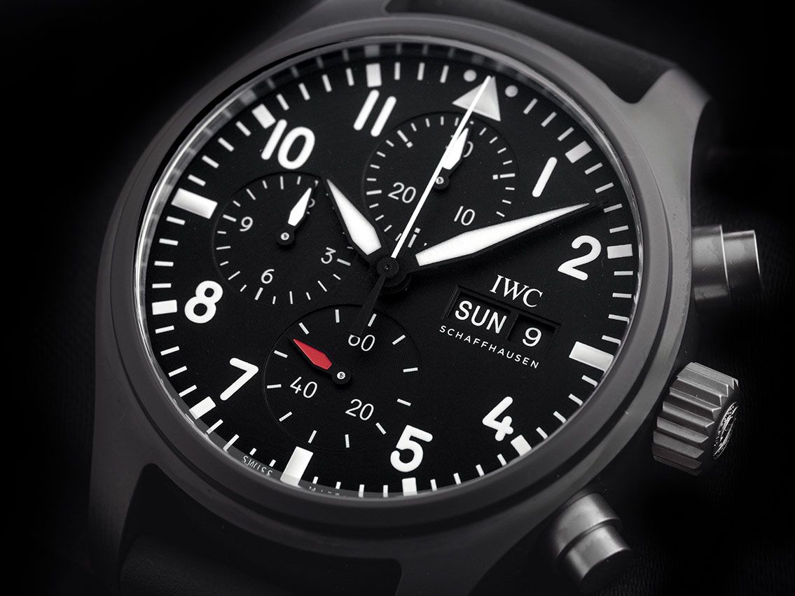 IWC Pilot's Watch Top Gun Cerâmica Automático Cronógrafo Pulseira de Borracha