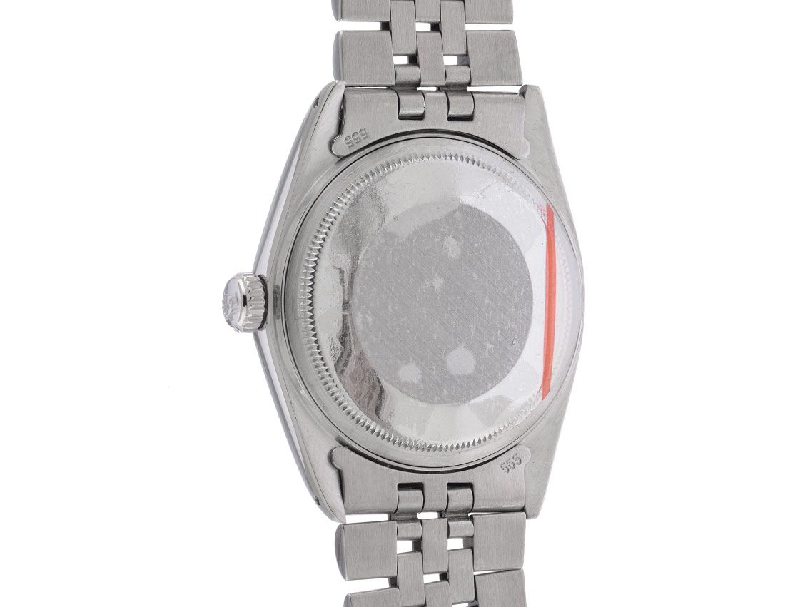 Caixa em aço polido e acetinado, diâmetro da caixa sem coroa 36mm, altura da caixa 13,0mm. Bezel em ouro branco 18kt estriado e polido. Pulseira Jubilé em aço polido e acetinado, fecho dobrável em aço com logotipo do fabricante. Mostrador preto com índices em ouro branco aplicados e ponteiros em ouro branco. Movimento automático, cronômetro, calibre de manufatura Rolex 3035 com 27 pedras preciosas. Exibição de horas, minutos e segundos através de ponteiros centrais com parada de segundos para ajuste preciso da hora, exibição de data com ajuste rápido sob lupa às 3 horas com 6/9 aberto (seis e nove abertos na exibição de data). Vidro acrílico curvado. Coroa rosqueada com logotipo do fabricante. Fundo em aço rosqueado. Peso do relógio incluindo a pulseira 86g, comprimento da pulseira incluindo a caixa 170mm. Número de referência: 16014, número da caixa: 8531XXX, ano de fabricação: 1984, ID: P277681100326HW-8100, número do artigo: 10000085336. Caixa original da Rolex, descrição, estojo de couro, folheto de tradução, selo de cronômetro Rolex e extrato do Watch Register de março de 2026, Certificado do Watch Register / sem registro (Banco de dados internacional para relógios perdidos ou roubados). Original não polido, pode ser restaurado gratuitamente se desejado. Prazo de entrega imediato.