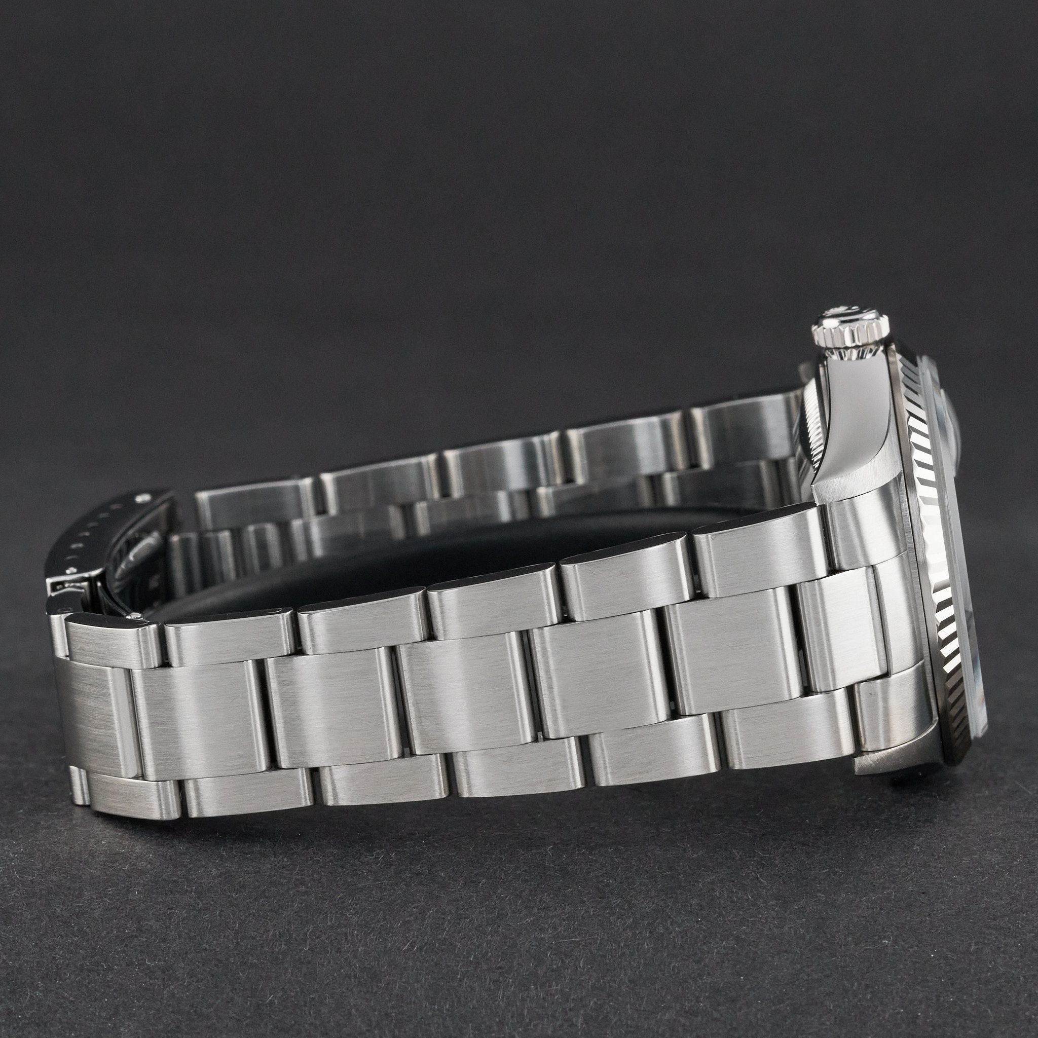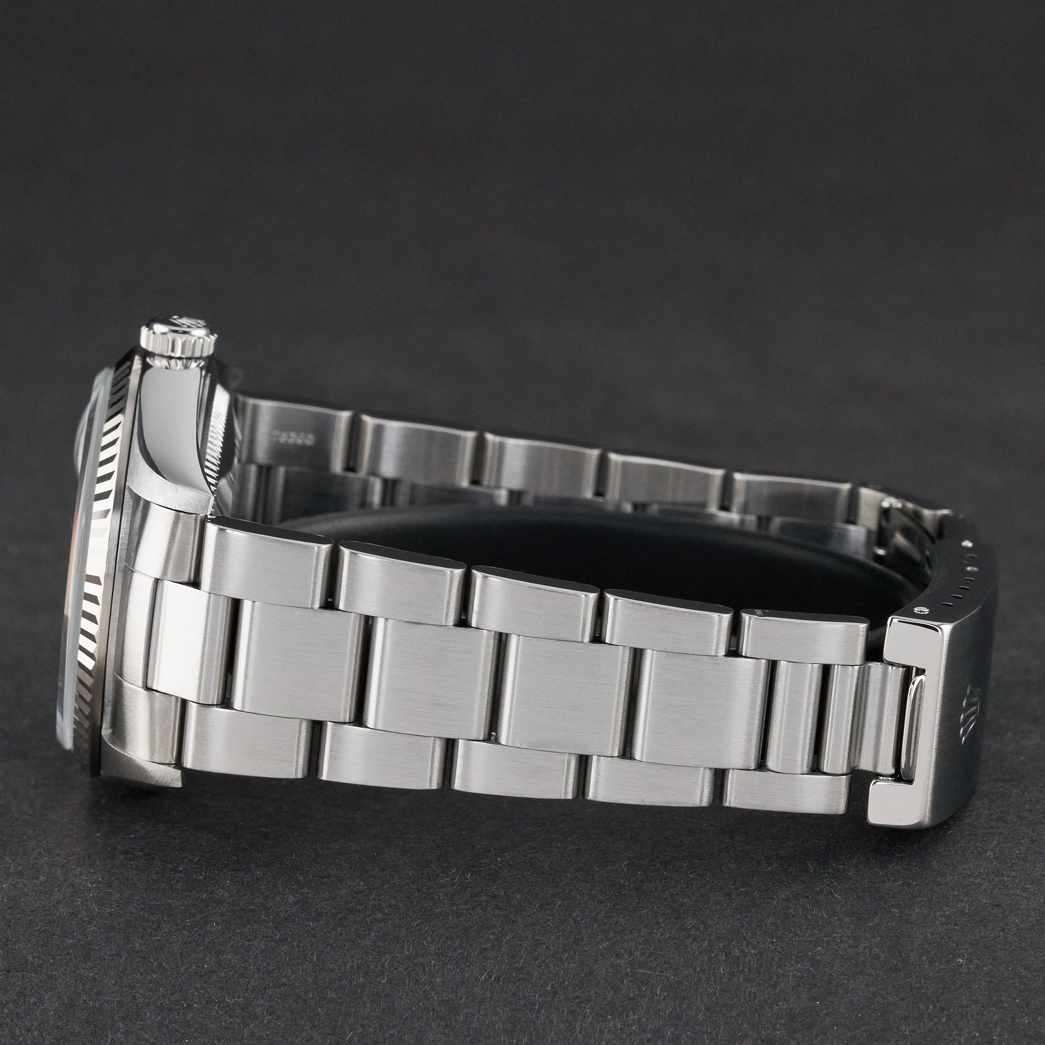- Sinais leves de uso como micro-riscos ou pequenos riscos superficiais. A caixa, a luneta e a bracelete mantêm arestas definidas e a forma original. Pode ter sido polido profissionalmente sem afetar os contornos originais. Totalmente funcional mecanicamente.