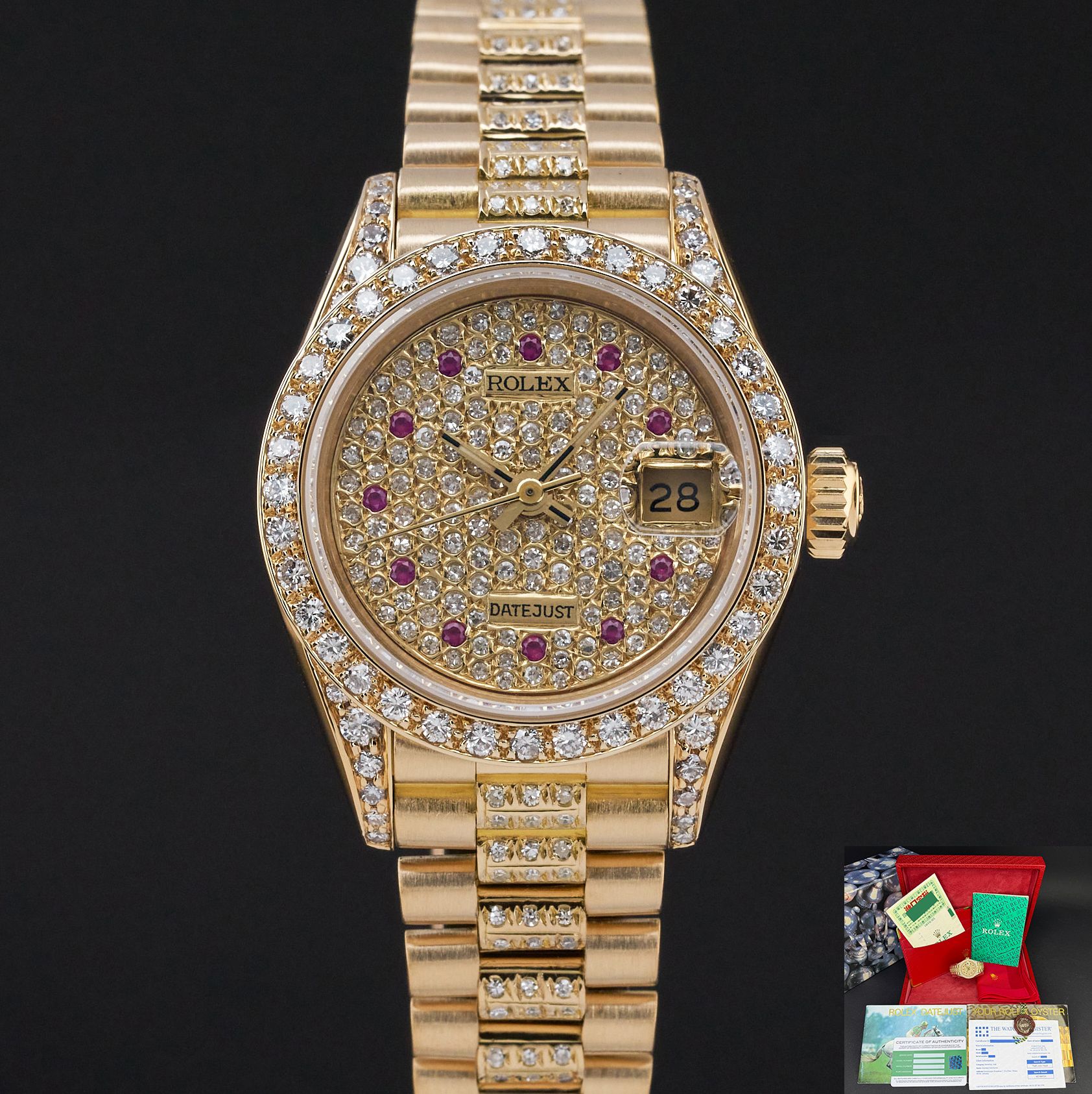Rolex Lady Datejust, 69178, 26mm, 1987, Yellow gold, Pave Ruby Diamond dial, Fullset, 1y warranty
