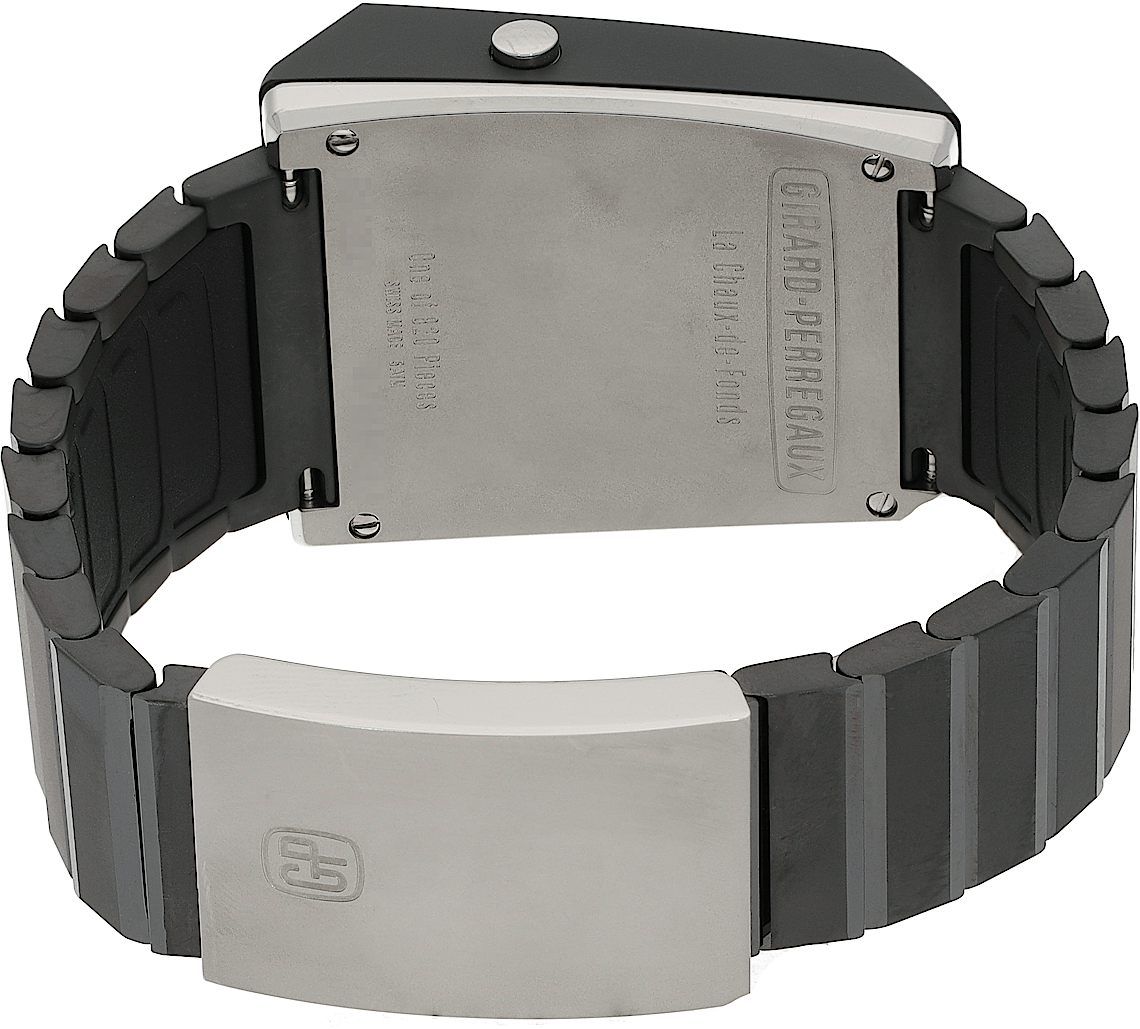 Girard Perregaux Casquette 2.0, Reference: 39800-32-001-32A, Gender: Male, Size: 42mm, Dial color: Transparent, Strap material: Ceramic, Movement: Quartz, Year: 2022, Condition: Previously worn with some signs of usage. The movement is flawless and the case has been cleaned. watch tested to ensure full functionality. An inspection by our certified watchmakers guarantees its authenticity., Documents: Original papers, CHRONEXT Certificate