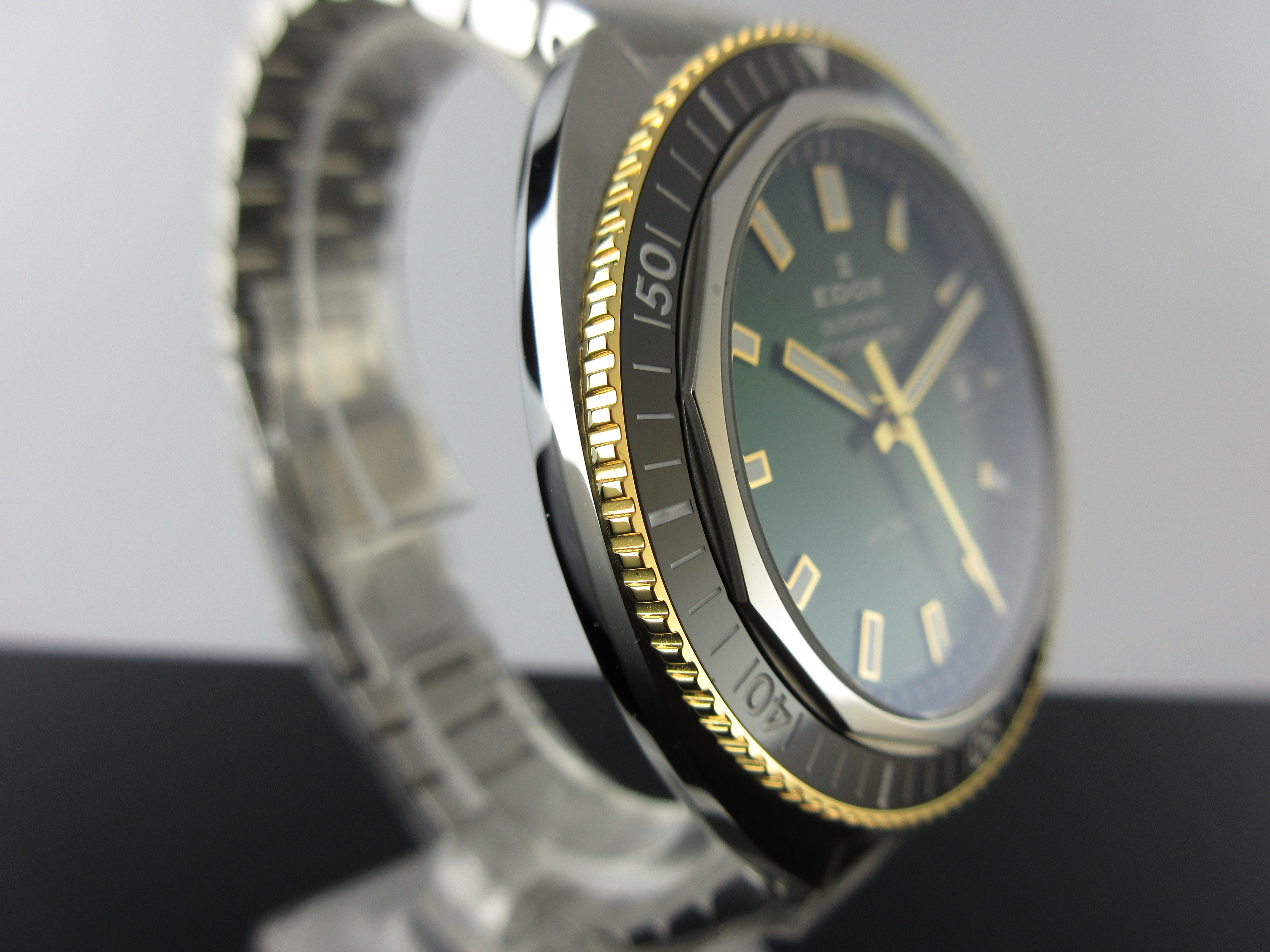 Technische Angben : Drehbare Keramiklünette , Edox Krone und/oder Drücker mit doppeltem O-Ring , Nachleuchtende Zeiger und/oder Indizes , Sicherheitsschraubkrone