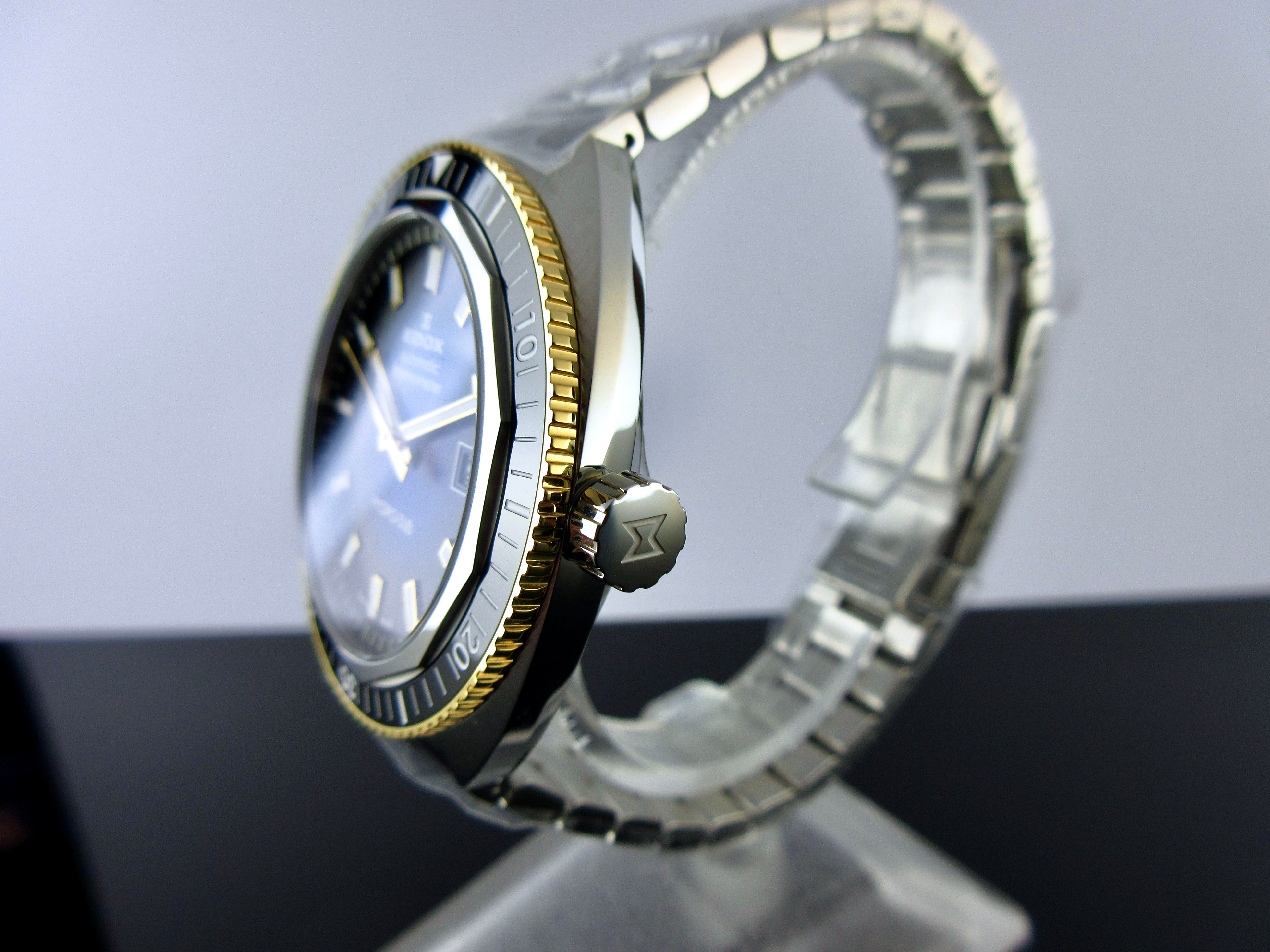 Especificações técnicas: Luneta giratória em cerâmica, Coroa e/ou botão Edox com O-ring duplo, Ponteiros e/ou índices luminescentes, Coroa de segurança rosqueada