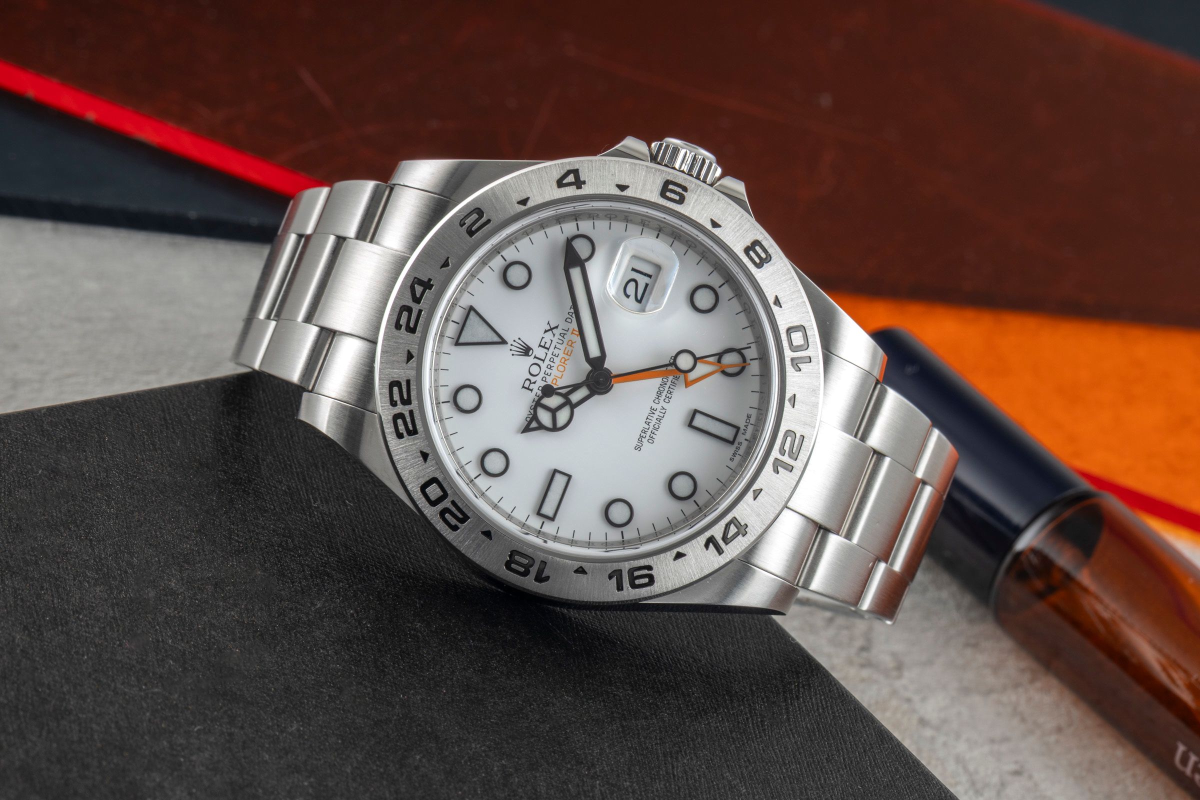 Alternative title: Rolex 216570 - Explorer II; Rolex Explorer II White Dial Oyster Edelstahl Automatik Herrenuhr Ref. 216570 [2601479]