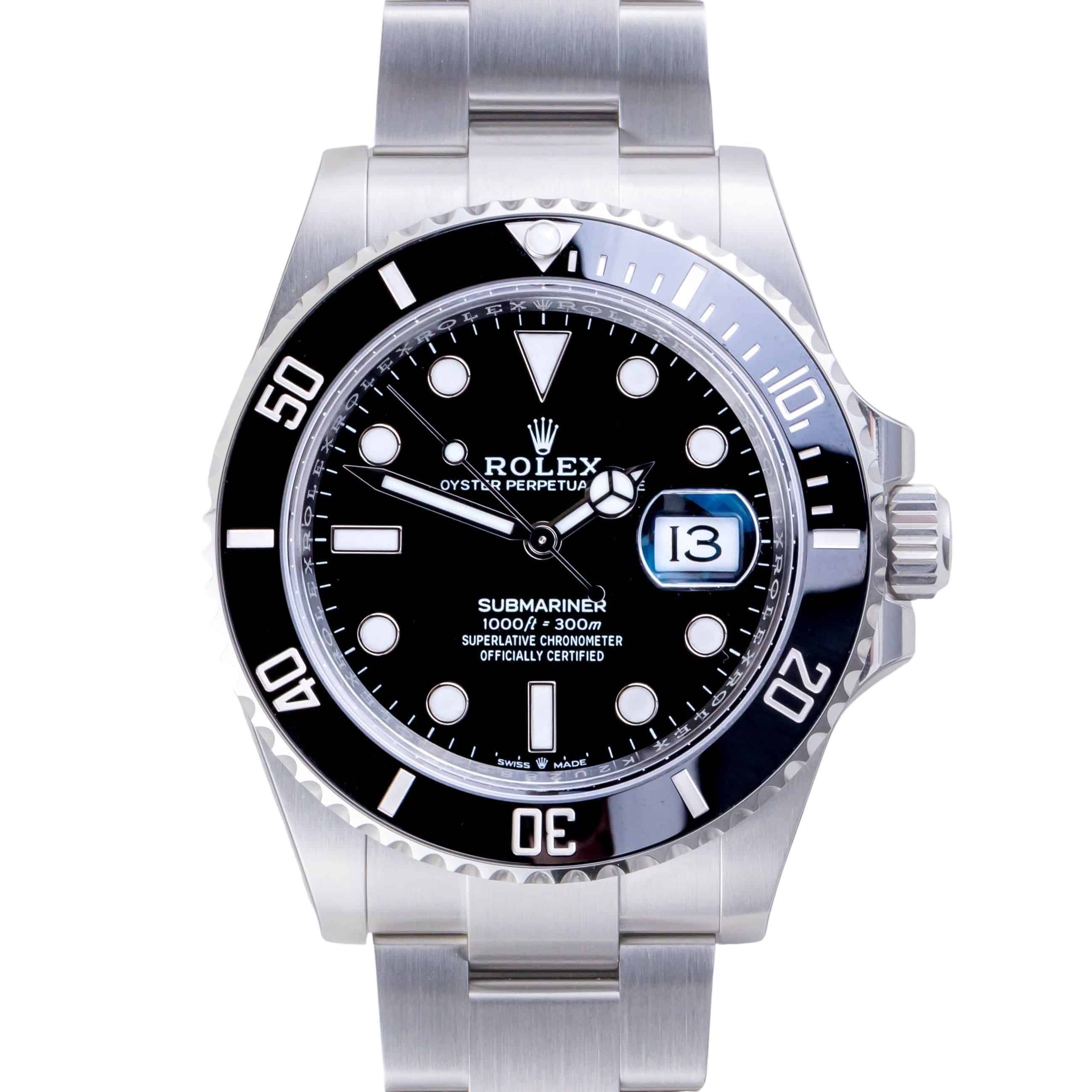 NEW Rolex Submariner Date reference 126610LN from 2025 including full set. The Submariner Date measures a 41mm stainless steel case, a stainless steel Oyster bracelet w/ Oysterlock clasp and a ceramic (rotatable) bezel. The Submariner Date 126610LN features an automatic movement caliber 3235, a scratch resistance sapphire crystal and black dial with chromalight display.Every watch sold by Langedyk Vintage Watches is included with a LVW watch box, Authenticity report and free worldwide (insured) shipment. In addition, every pre-owned watch is offered with our 12-month warranty from the date of purchase.