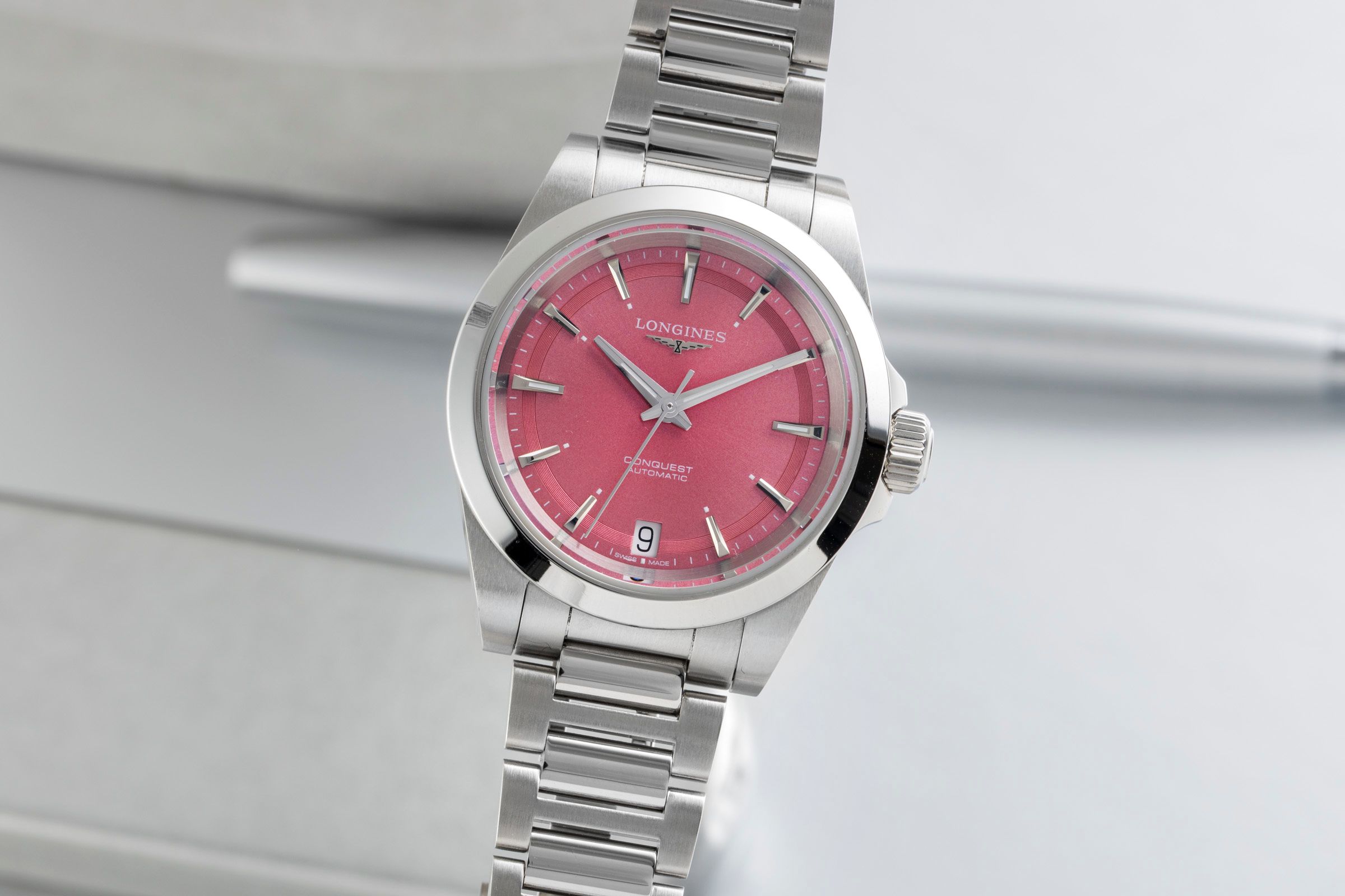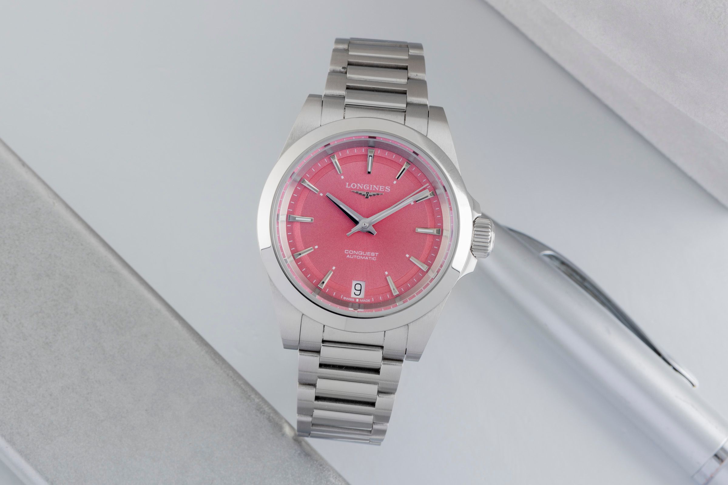 Alternative title: Longines L3.430.4.99.6 Conquest 34 Stainless Steel / Pink / Bracelet; Longines Conquest Stahl Automatik Damenuhr Ref. L3.430.4.99.6 Box & Papiere 2024 [2601696]