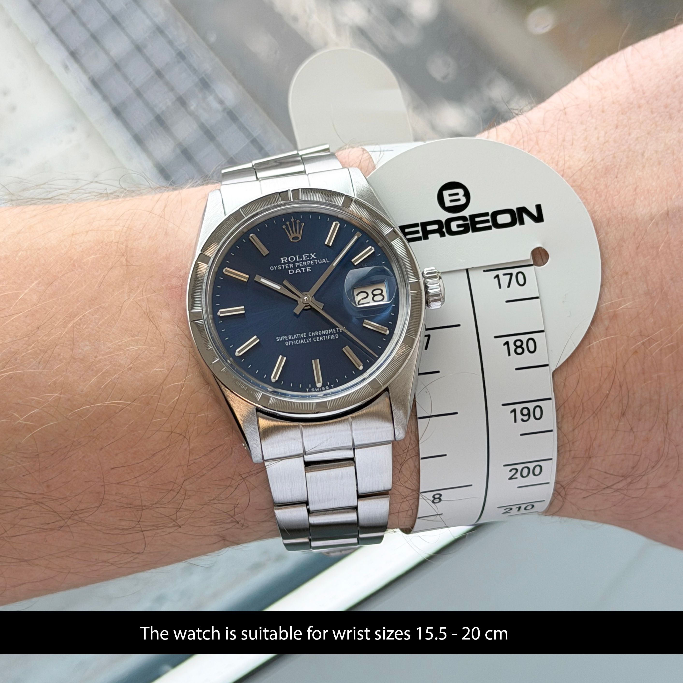 Rolex Oyster Perpetual Date, 1501, 34mm, 1970, Steel, Blue dial, Fullset, 1y warranty