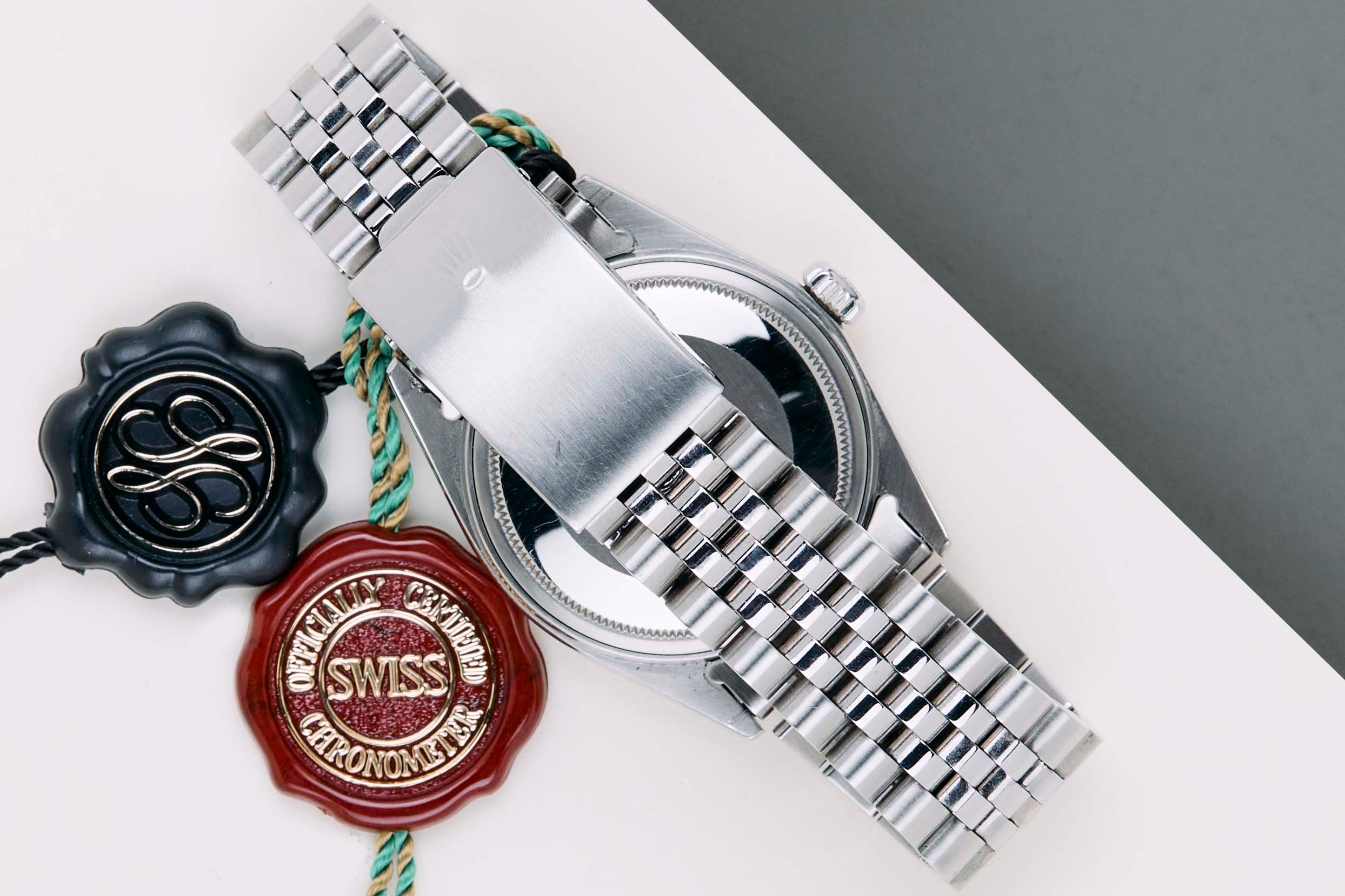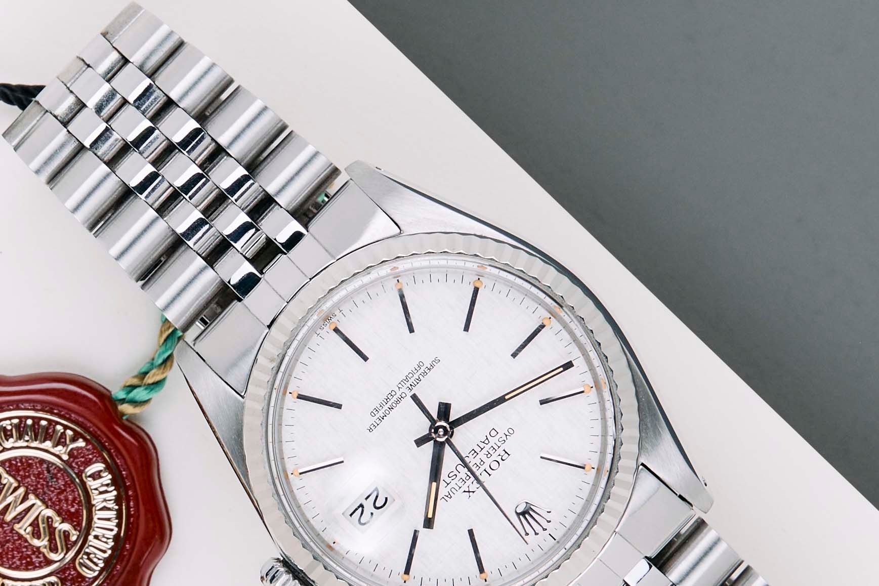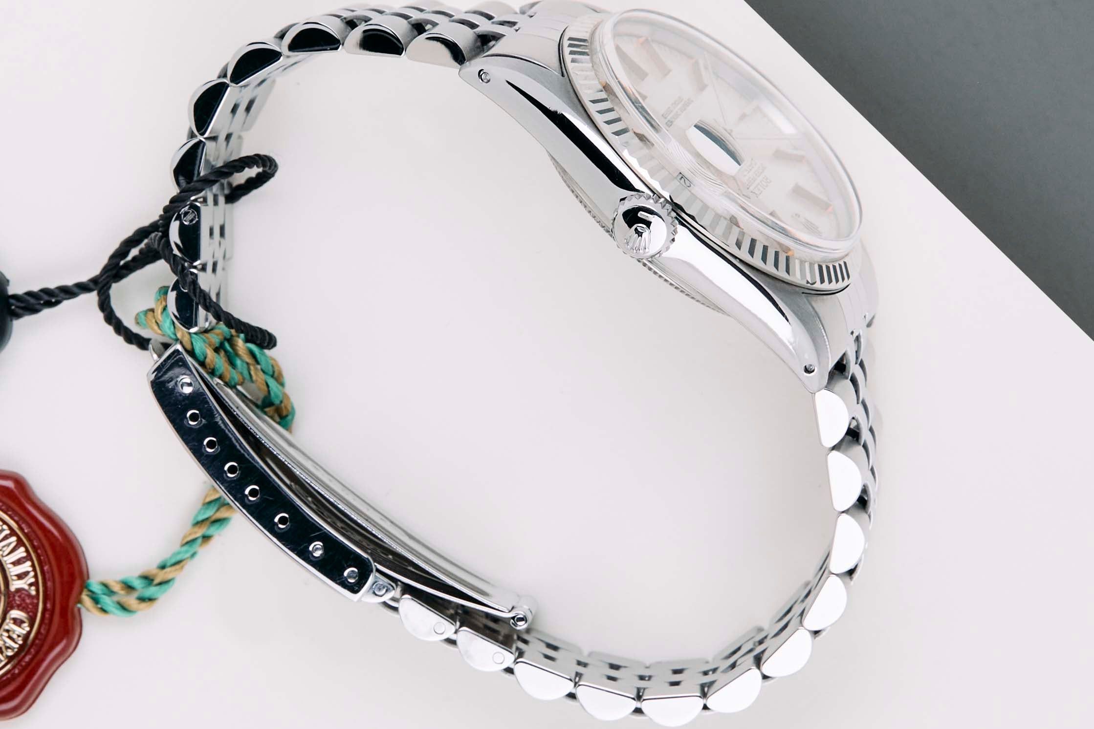 Rolex introduced the original Datejust in 1945 to celebrate the company's 40th anniversary. Due to the various case sizes and materials, the Datejust has been ingrained in Rolex's history and remains incredibly popular for 75 years.This Rolex Datejust 36 'Linnen Dial - Jubilee' was sold for the first time in December 1985.This Datejust is made of a combination of 18k White Gold and stainless steel and is fitted with a Jubilee bracelet. This 16014 is equipped with an original T Swiss T 'Linnen' Dial. In addition, the Datejust is equipped with an open 6 & 9 Date Wheel. The main benefit of a 16014 over a 1601 is the quick-set function for the date.This Rolex Datejust 36 is in mint condition. Furthermore, the watch has been serviced by our watchmaker, and therefore it comes with one year of Steiner warranty.