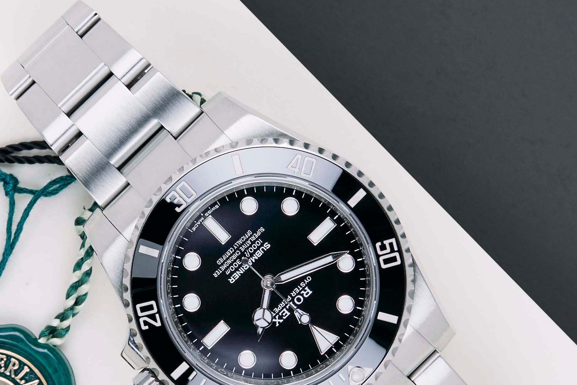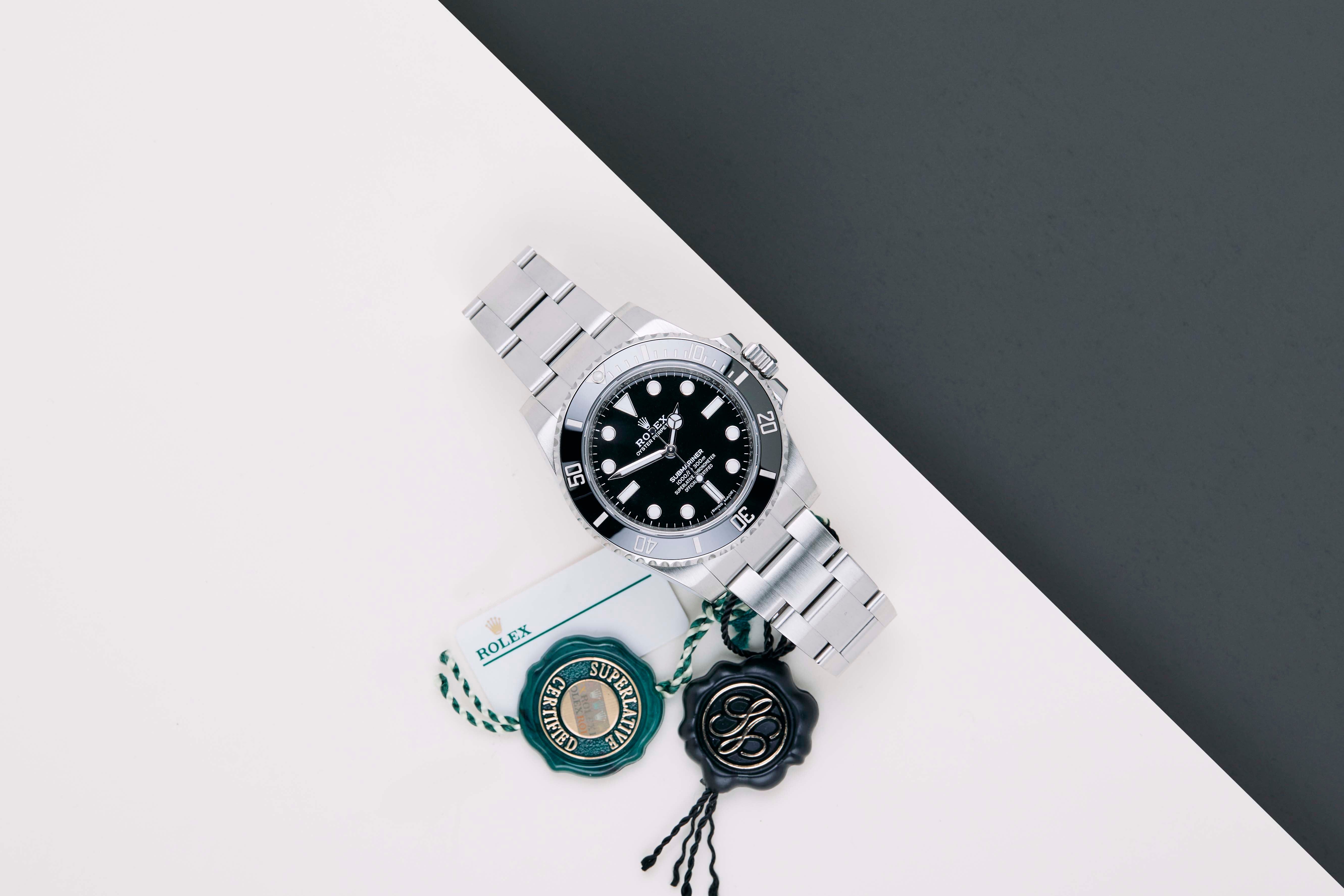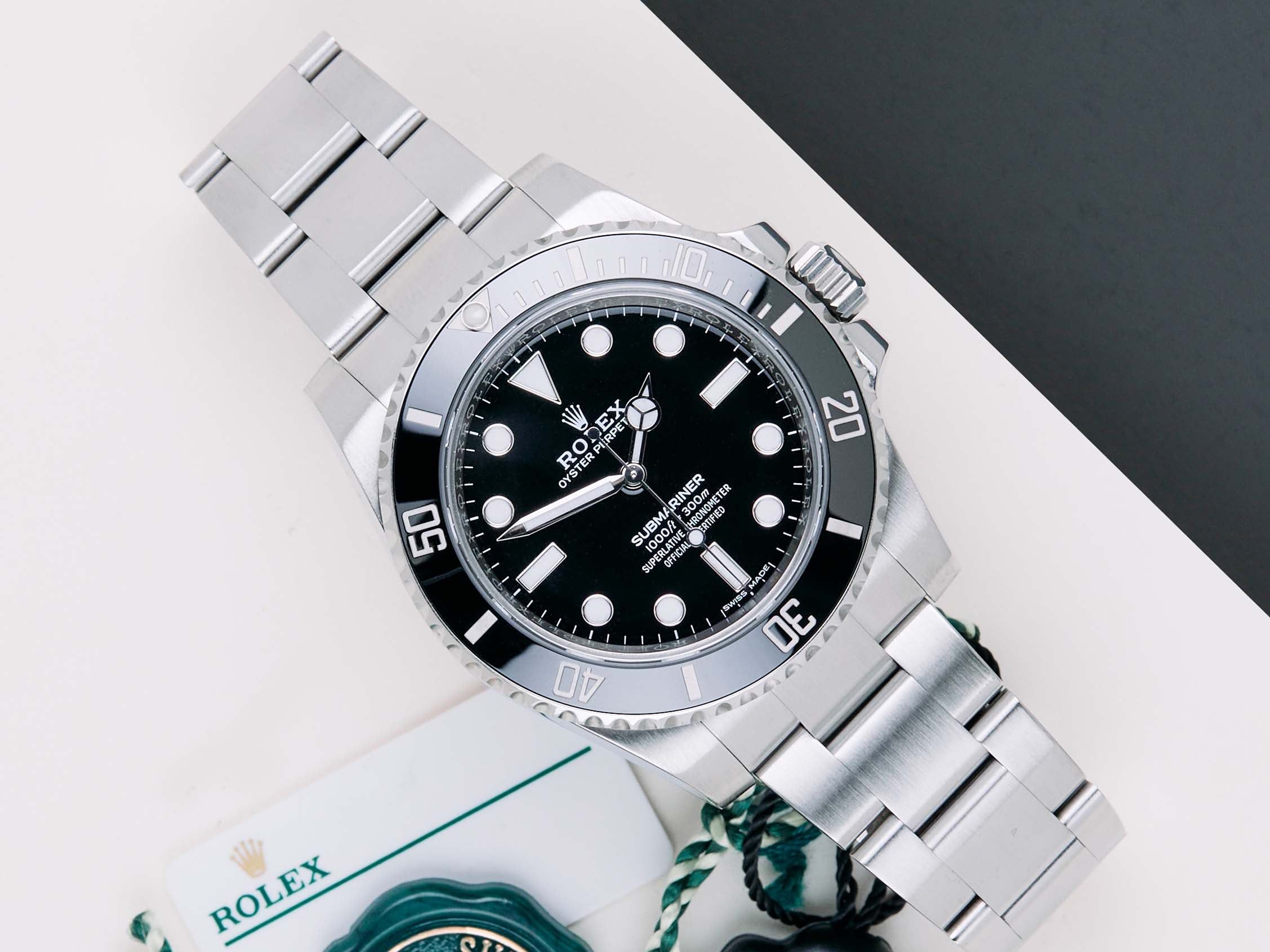 Full Set | Including Original Rolex White TagThe Rolex Submariner was introduced by Rolex in 1953. It is known for its durability, reliability, and precision, and it has become one of the most iconic and recognizable watch models in the world.This Rolex Submariner 'No Date' was sold for the first time in February 2019.The watch is fully made out of stainless steel. Rolex uses 904L in its steel watches, which is an extremely resistant and highly polishable superalloy. This generation of the Submariner is equipped with a Chromalight dial which can be recognized by the blue lume. This Submariner No Date comes with a black dial and bezel.This Rolex Submariner No Date comes as a full-set with the original Rolex Warranty Card and original box. Furthermore, the watch has been serviced by our watchmaker, and therefore it comes with one year of Steiner Warranty.