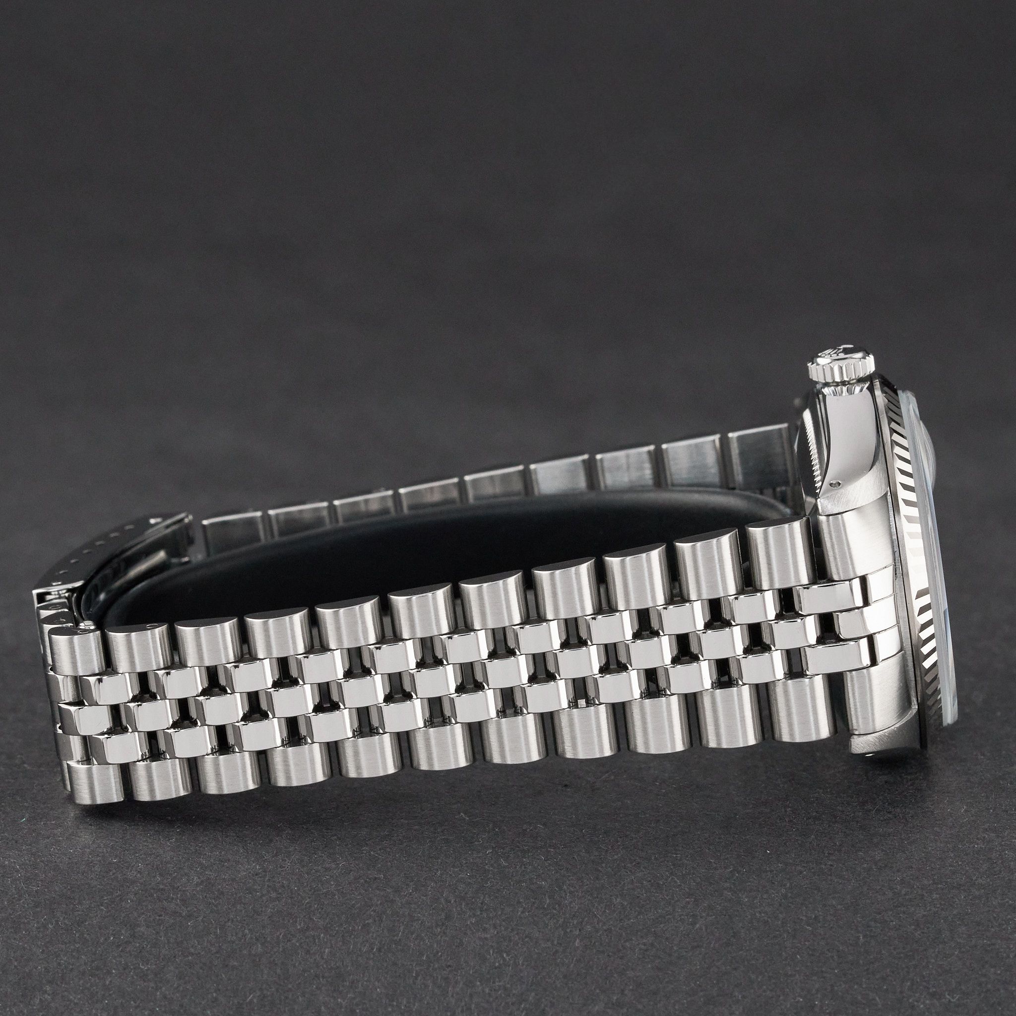 This Rolex Datejust 16234 features a Grey dial and is crafted from stainless steel, with a production year of 1989.