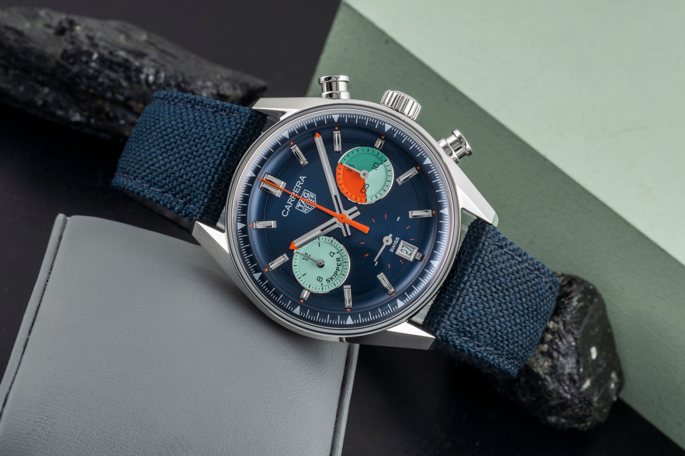 Alternative title: TAG Heuer CBS2213.FN6002 Carrera Chronograph Skipper Skipper Glass Box Stainless Steel / Blue; Tag Heuer Carrera Skipper Chronograph Stahl Automatik CBS2213.FN6002 NP: 7150,-€ [2601741]