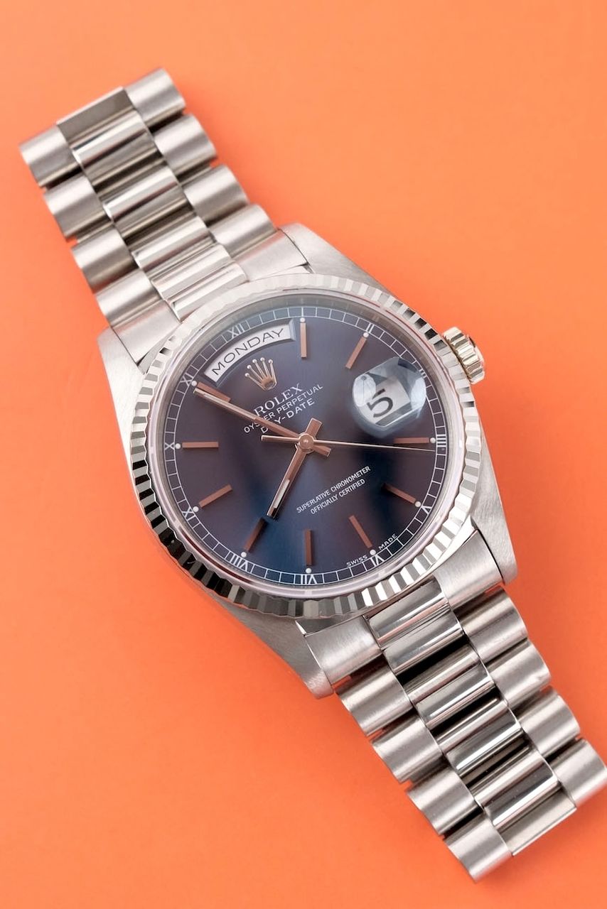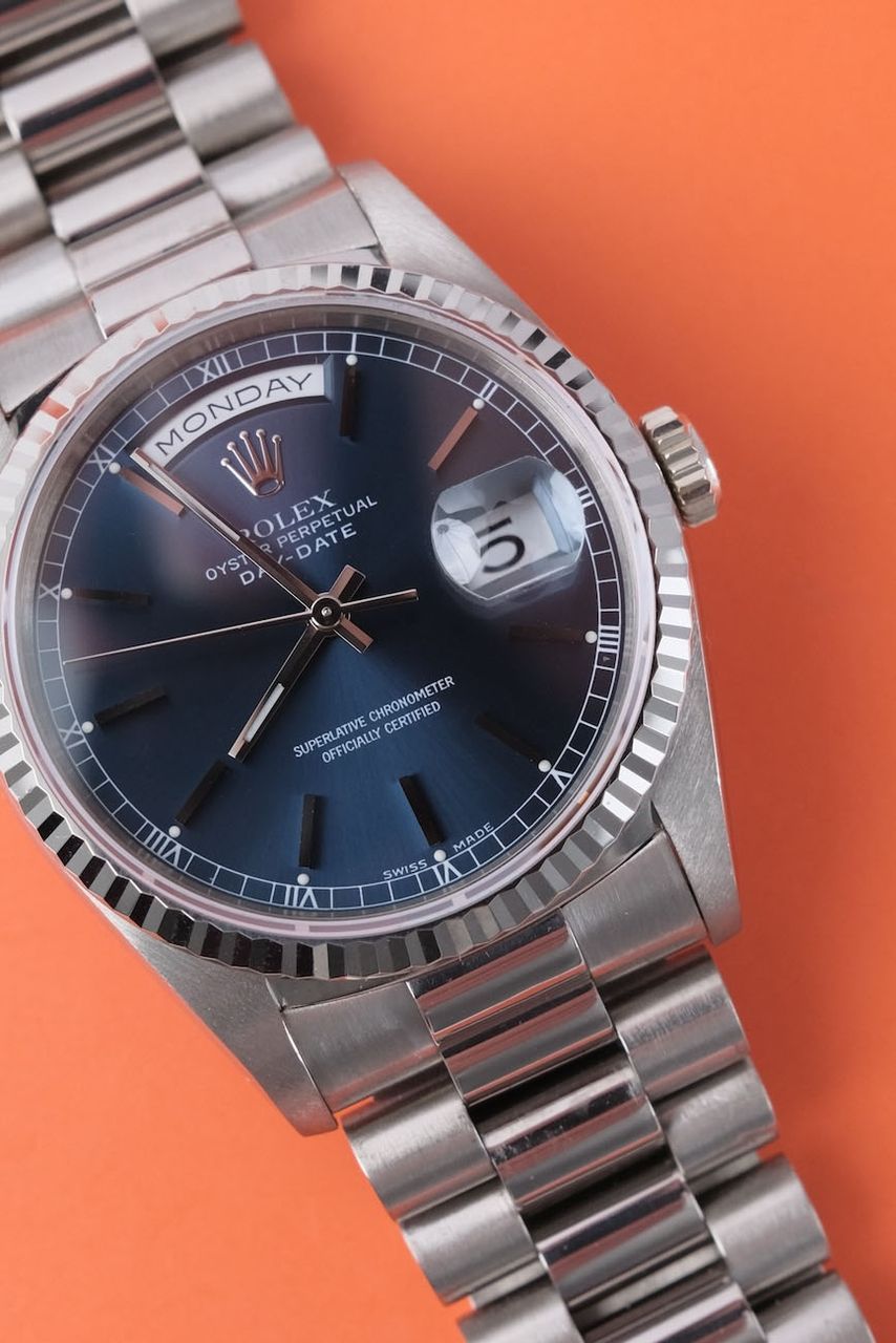 Rolex Day-Date 36 Rolex Day-Date 36 18239 Blue Stick Dial White Gold W-Series