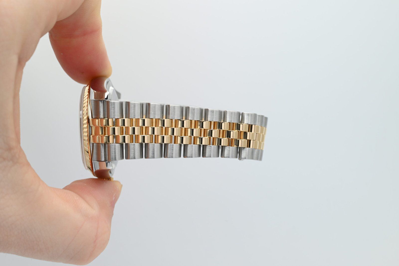 - Sinais leves de uso como micro-riscos ou pequenos riscos superficiais. A caixa, a luneta e a bracelete mantêm arestas definidas e a forma original. Pode ter sido polido profissionalmente sem afetar os contornos originais. Totalmente funcional mecanicamente.