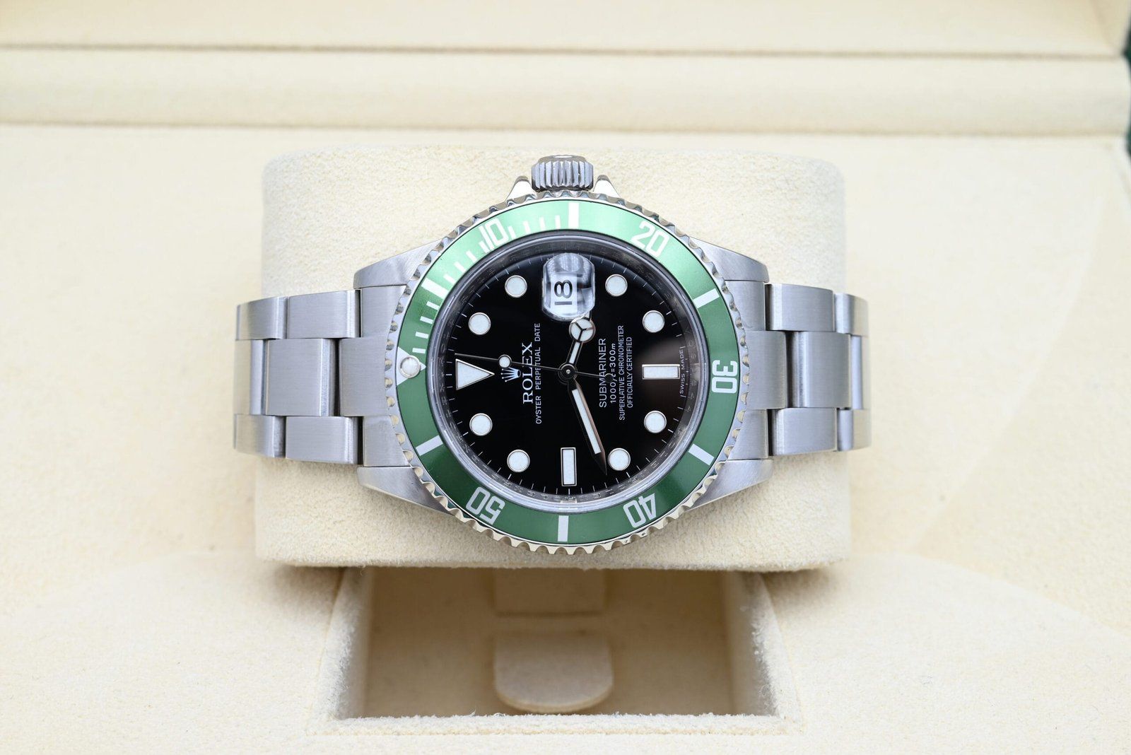 Rolex Submariner 16610LV from 2009 in excellent condition, including the original box and papers.All of our watches have been thoroughly checked by our own watchmaker and serviced when needed.
