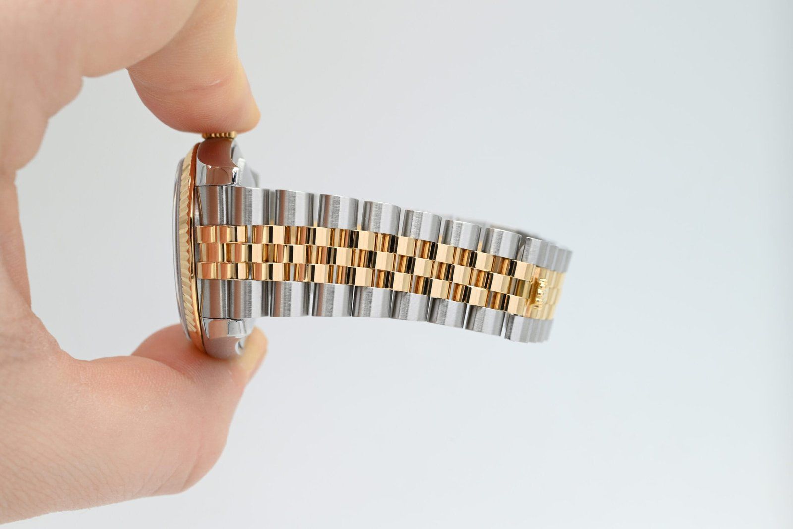 - Sinais leves de uso como micro-riscos ou pequenos riscos superficiais. A caixa, a luneta e a bracelete mantêm arestas definidas e a forma original. Pode ter sido polido profissionalmente sem afetar os contornos originais. Totalmente funcional mecanicamente.