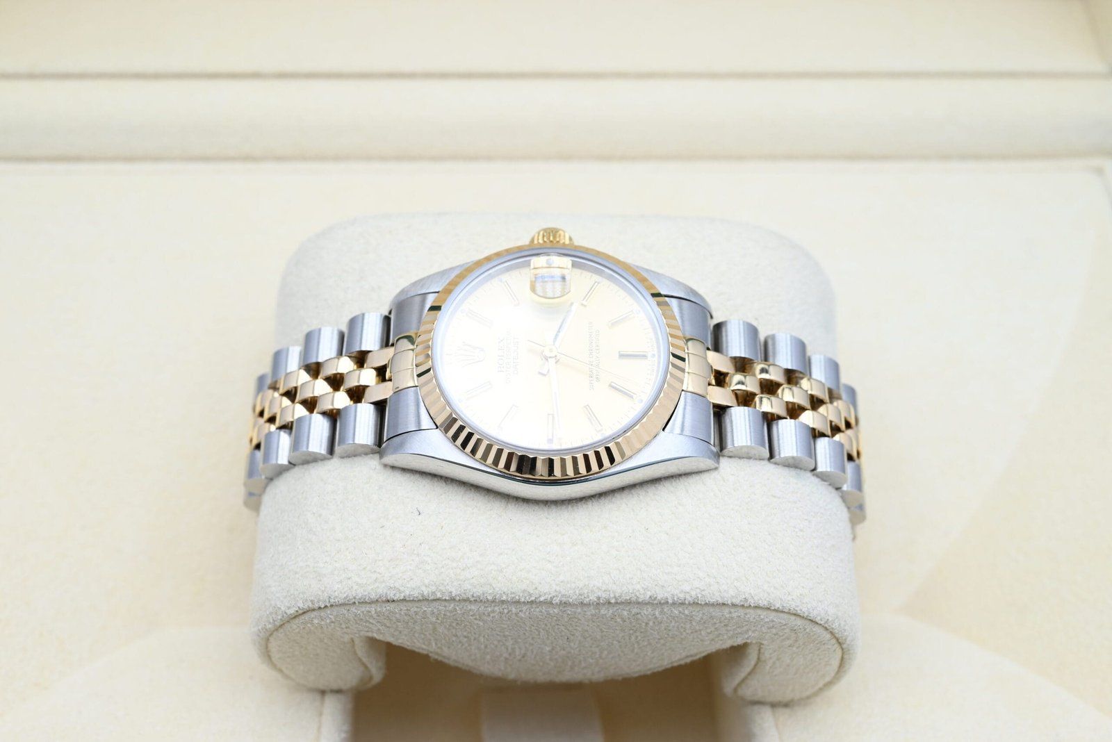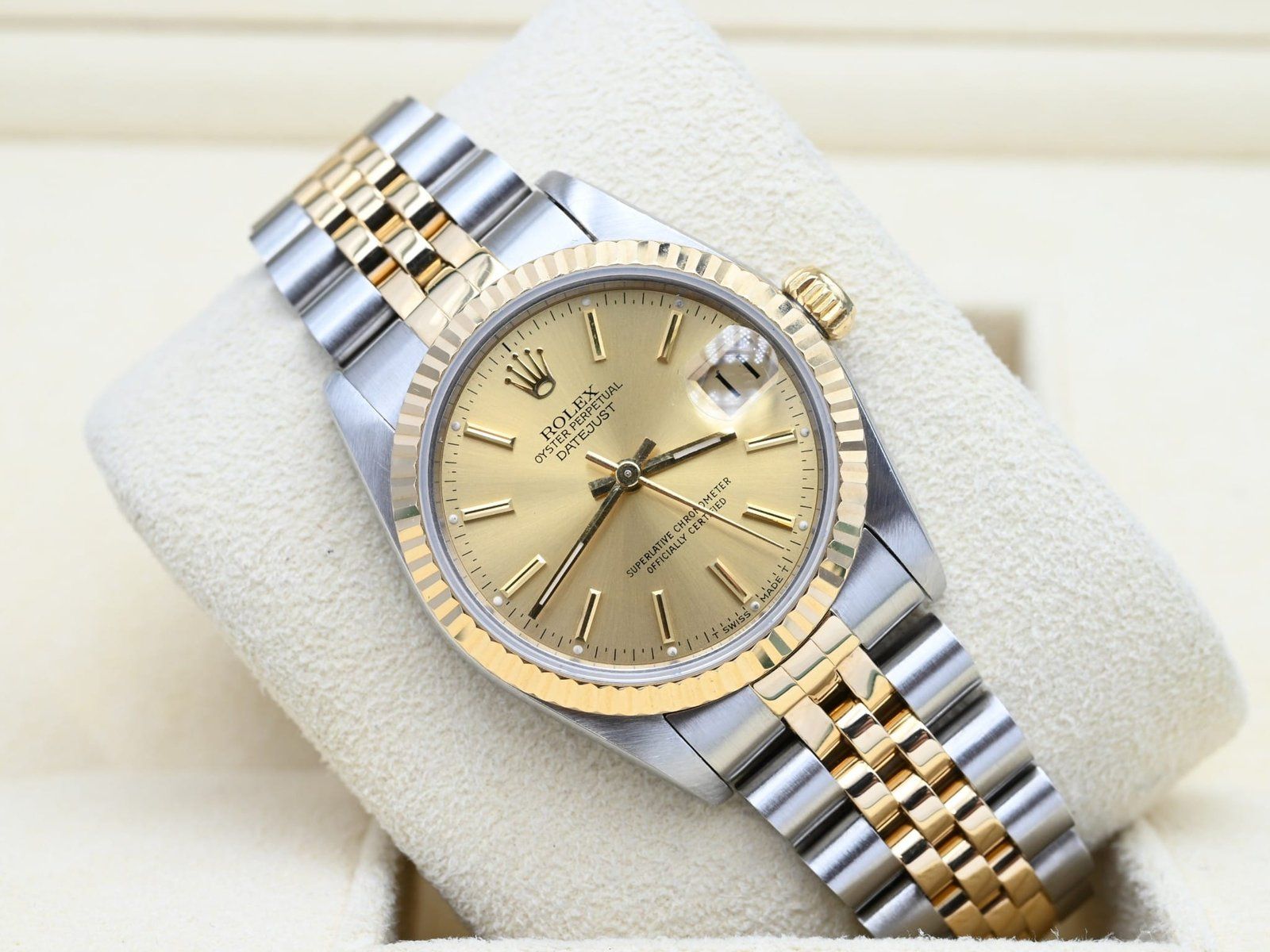 Rolex Datejust Ref. 68273 from 1996 with the champagne dial in excellent condition, including the original Rolex box. All of our watches have been thoroughly checked by our own watchmaker and serviced when needed.