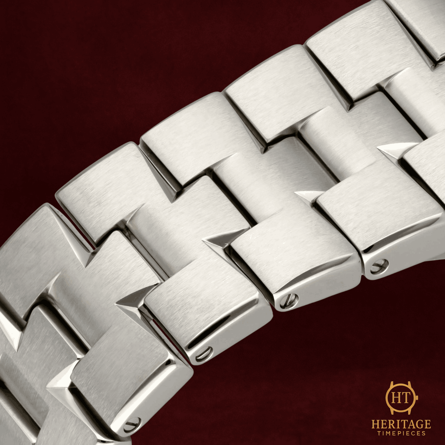 - Sinais leves de uso como micro-riscos ou pequenos riscos superficiais. A caixa, a luneta e a bracelete mantêm arestas definidas e a forma original. Pode ter sido polido profissionalmente sem afetar os contornos originais. Totalmente funcional mecanicamente.
