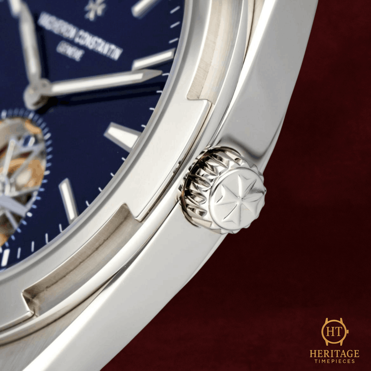 Heritage Narrative The Vacheron Constantin Overseas Tourbillon reference 6000V/110A-B544 represents one of the most technically prestigious executions within the Overseas collection, combining the brand’s travel-inspired sports-luxury design with true haute horlogerie. Crafted in stainless steel and certified with the Hallmark of Geneva, this reference stands as a rare example of a tourbillon integrated into a contemporary sports watch format without compromising finishing standards. This example from 2021 is presented in like-new pre-owned condition and offered as a full set. The watch features a blue dial with a clean, numeral-free layout and the signature Overseas design language. The tourbillon is displayed prominently, with the tourbillon carriage inspired by the Maltese cross, reinforcing Vacheron Constantin’s historic emblem and craftsmanship identity. Powering the watch is the Vacheron Constantin calibre 2160, an ultra-thin self-winding movement featuring a 22k gold peripheral rotor. The peripheral winding mass allows an unobstructed view of the movement through the sapphire display caseback, showcasing the finishing and architecture that qualify the watch for the Hallmark of Geneva. The movement offers an approximate power reserve of 80 hours, combining technical refinement with practical autonomy. The 42.5 mm stainless steel case maintains the Overseas’ sporty proportions while remaining relatively slim for a tourbillon complication. A defining feature of the reference is Vacheron Constantin’s strap interchangeability system, typically supplied with three straps: steel bracelet, leather strap, and rubber strap, allowing the watch to shift seamlessly between formal and sport configurations. Presented complete with box and warranty, this Overseas Tourbillon offers exceptional horological pedigree in a versatile stainless steel platform, appealing to collectors seeking a modern sports watch with genuine high-complication substance. Technical Specifications Brand:Vacheron Constantin Model:Overseas Tourbillon Reference:6000V/110A-B544 Year:2021 Movement:Vacheron Constantin self-winding mechanical movement, Calibre 216022k gold peripheral rotor Complications:Tourbillon Case:42.5 mm stainless steel caseApprox. 10.39 mm thickness Bezel:Stainless steel bezel Crystal:Sapphire crystalSapphire display caseback Dial / Hands:Blue dialApplied indicesHands Bracelet / Straps:Stainless steel braceletInterchangeable strap system (typically includes leather and rubber straps) Clasp:Stainless steel deployant clasp Water Resistance:50 m (factory specification) Certification:Hallmark of Geneva (Poinçon de Genève) Condition & Inclusions Overall Condition:Pre-owned — like new condition Service Status:Movement tested and functioning correctly Set:Full set — includes box and warranty Shipping & Logistics The watch is stored securely and shipped fully insured within 1–3 business days. Worldwide shipping is available. Any applicable import duties or taxes are the responsibility of the buyer. Shipping & Returns Complimentary insured worldwide shipping and a 14-day return window. Each timepiece is authenticated, time-tested, and professionally prepared prior to dispatch. Secure packaging, tracking, and full insurance are included with every shipment.
