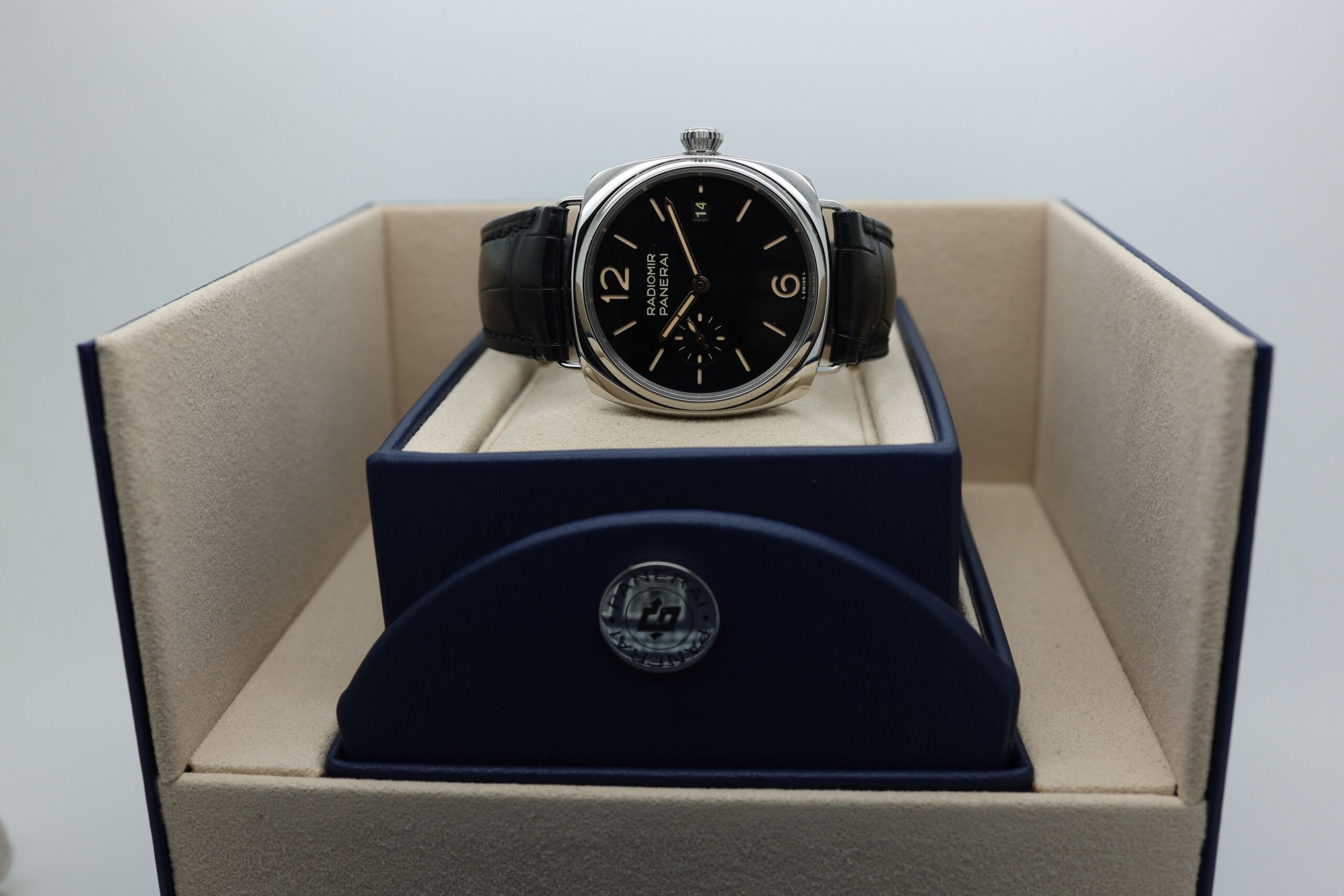 This example comes as a true full set, including original Panerai box, warranty card, booklets, and accessories. In near-perfect condition, it represents an excellent opportunity to acquire a modern Radiomir with minimal wear.