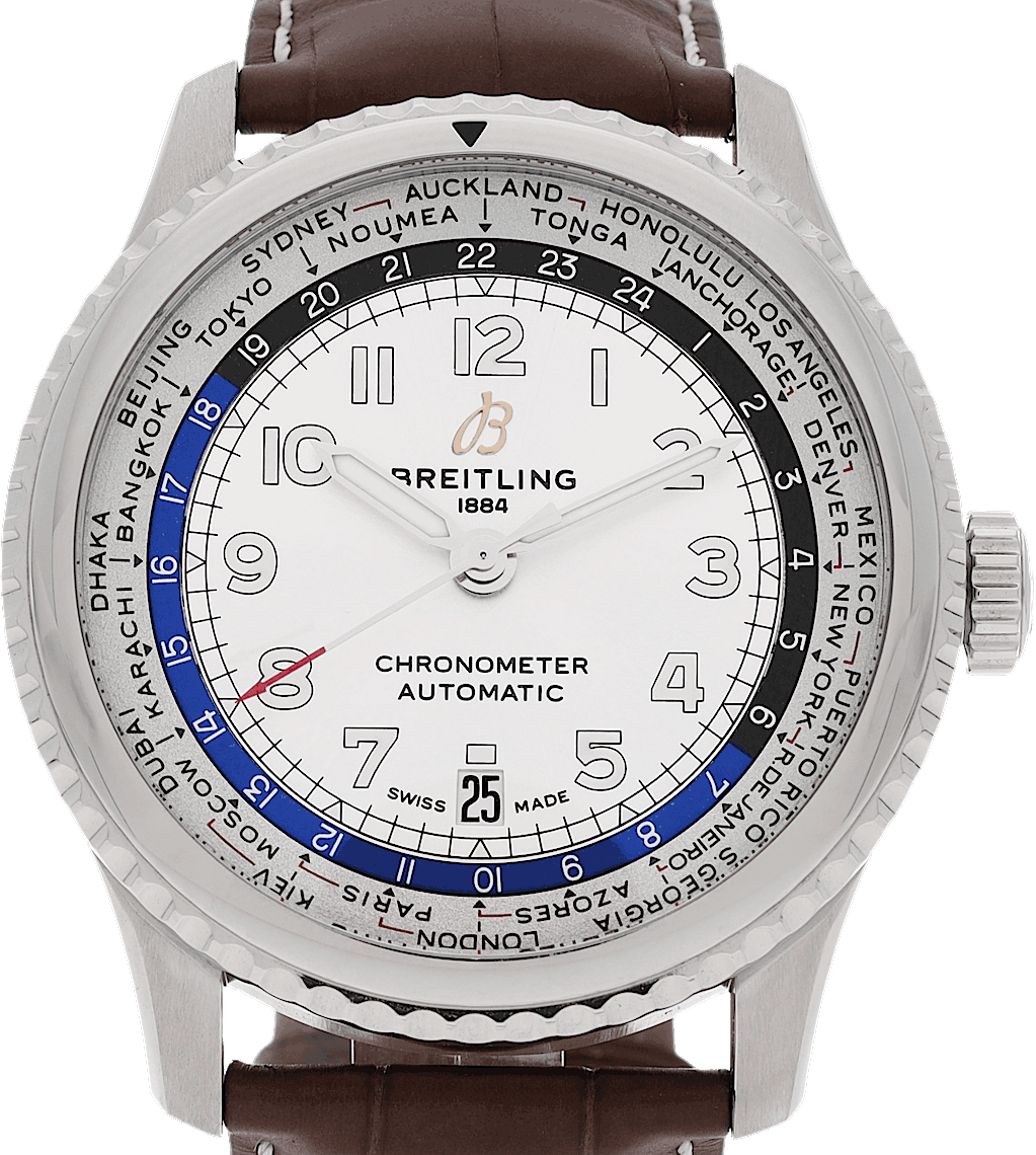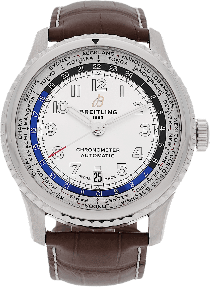 Breitling Aviator, Reference: AB3521, Gender: Male, Size: 44mm, Dial color: Silver, Strap material: Calf Leather, Movement: Automatic, Condition: Previously worn with some signs of usage. The movement is flawless and the case has been cleaned. watch tested to ensure full functionality. An inspection by our certified watchmakers guarantees its authenticity., Documents: Chronext Certificate