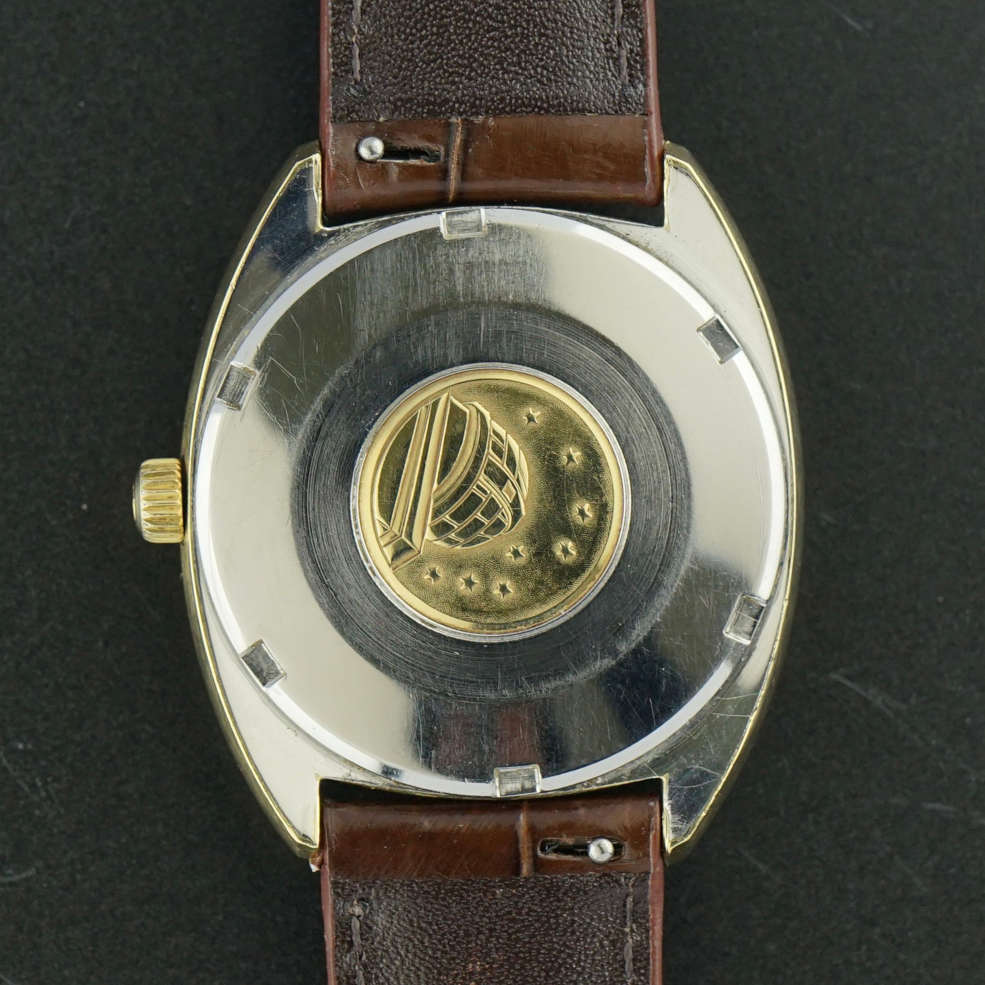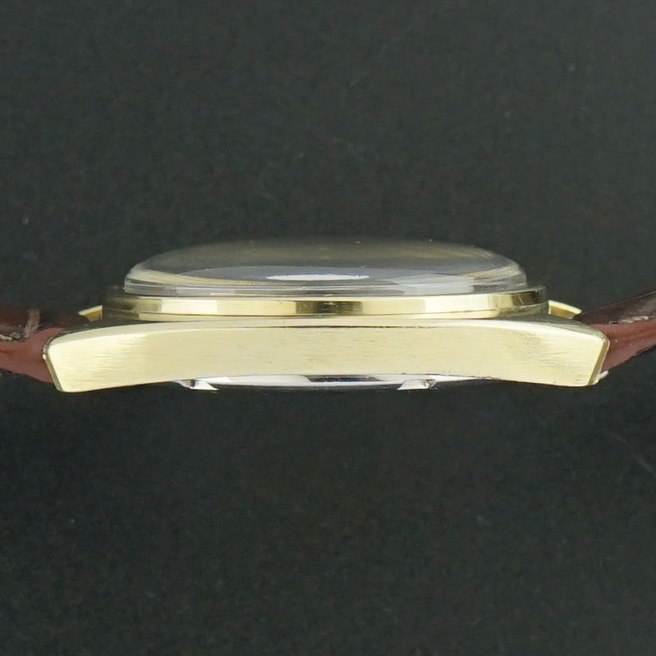 This vintage Omega Constellation C-shape from 1970 features a beautiful golden linen dial in excellent condition, paired with a gold-plated 35mm case retaining most of its original polish and showcasing the iconic C-shape design. It is powered by the chronometer-certified calibre 564 automatic movement, which was overhauled in April 2026 and now runs and functions great. The watch has been paired with a brown top grain leather strap with a crocodile motif and a light glossy finish, suiting this luxurious piece beautifully, overall condition is great and it would make for an excellent vintage dress watch in any collection.