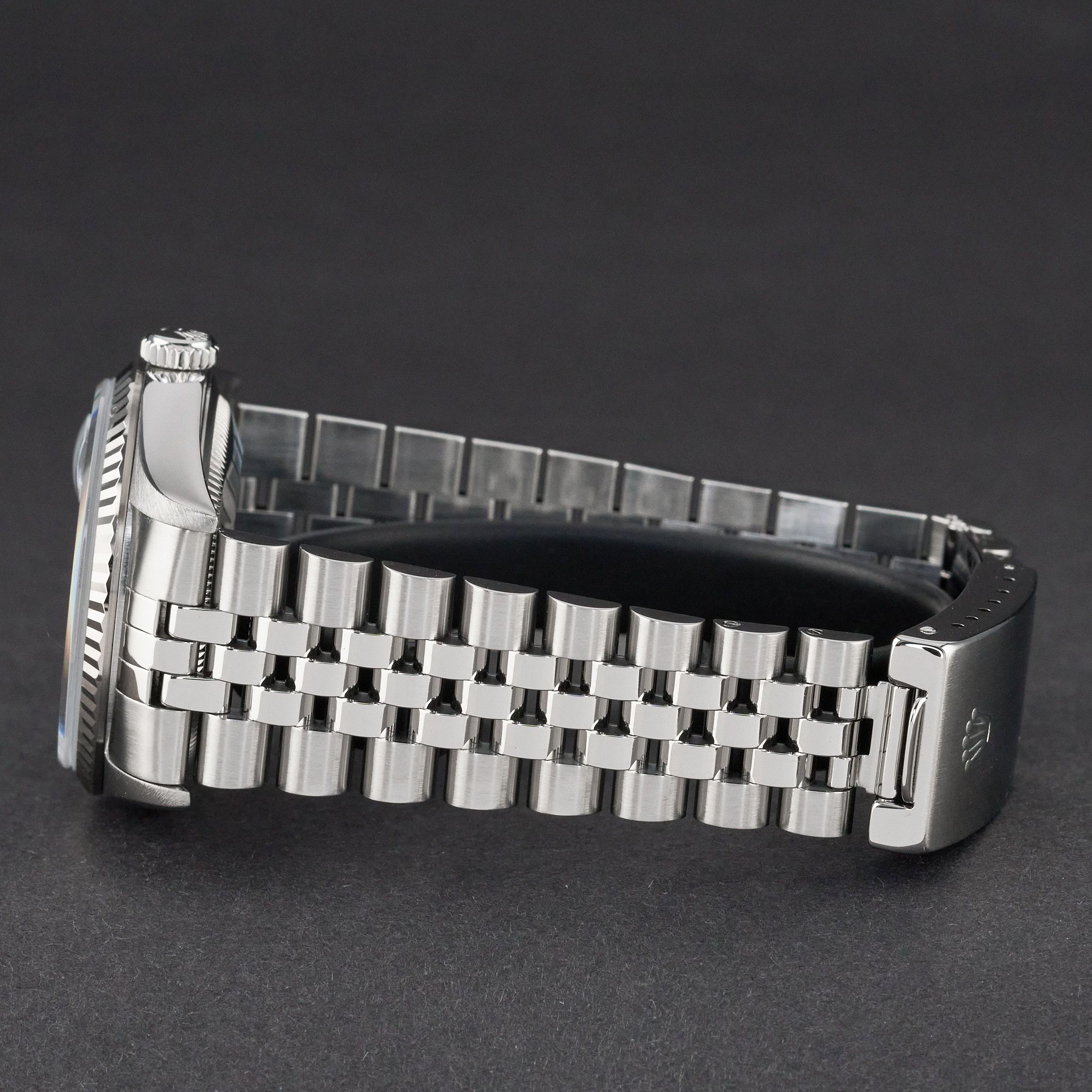 This Rolex Datejust 16234 features a Blue small diamond dial and is crafted from stainless steel, with a production year of 1994.