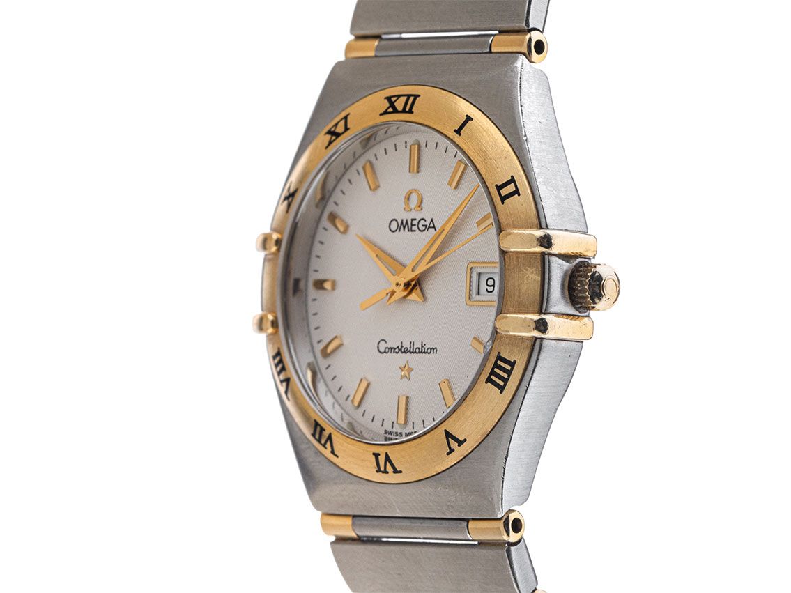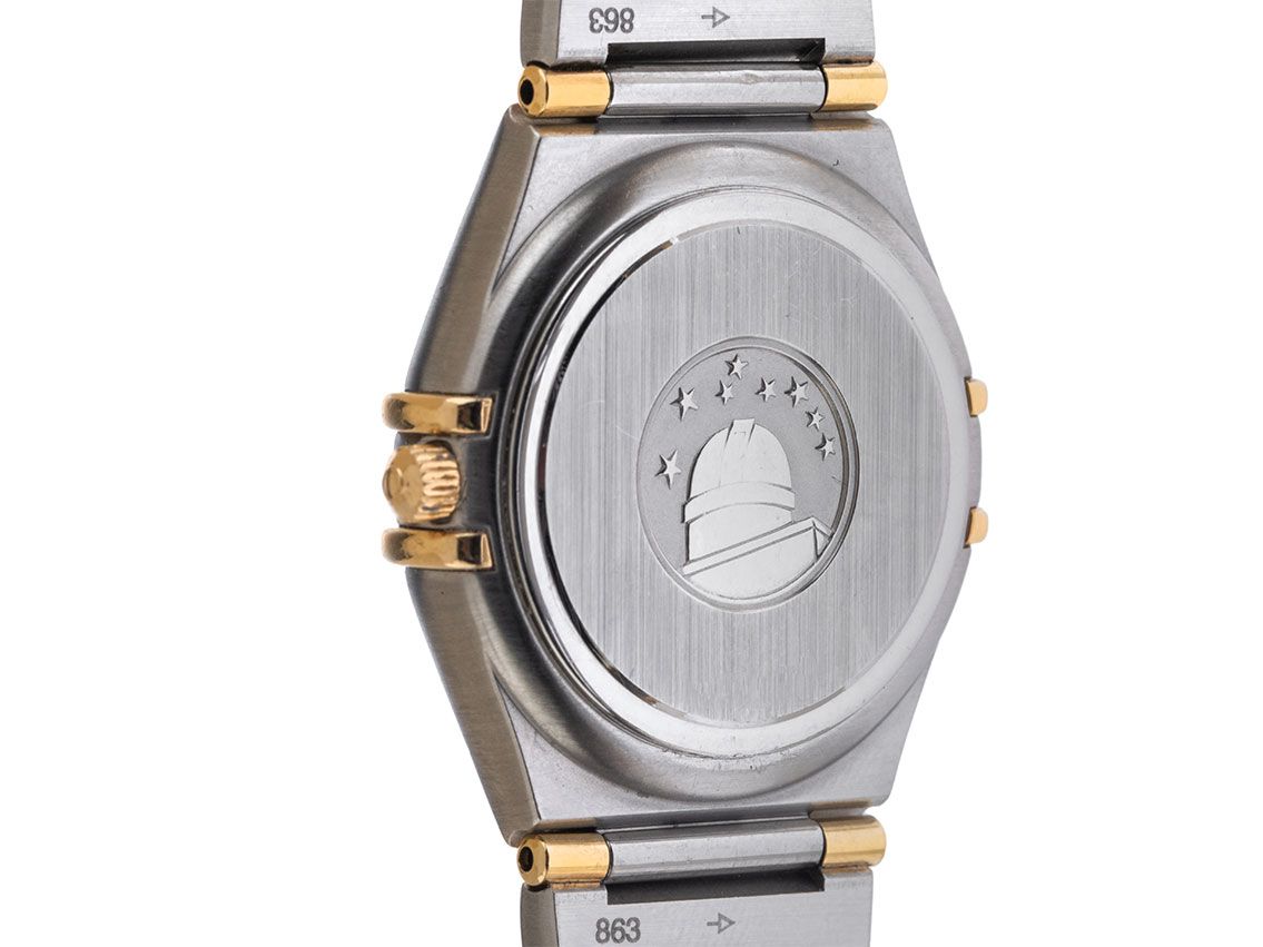 Gehäuse Edelstahl satiniert, Gehäusedurchmesser ohne Krone 27mm, Gehäusehöhe 8,1mm. Lünette Gelbgold satiniert mit schwarzen römischen Ziffern. Armband Edelstahl / Gelbgold poliert und satiniert, Sicherheitsfaltschließe Edelstahl mit Hersteller-Logo. Zifferblatt cremeweiß mit aufgesetzten gelbgoldenen Indexen und gelbgoldenen Zeigern. Uhrwerk quarzgesteuert, Omega Manufakturkaliber 1424 mit 9 Edelsteinen. Anzeige von Stunde, Minute und Sekunde über Zeiger aus der Mitte mit Sekundenstopp zur sekundengenauen Einstellung der Uhrzeit, Datumsanzeige mit Schnellverstellung bei 3 Uhr. Saphirglas kratzfest und gewölbt. Krone mit Hersteller-Logo. Boden Edelstahl graviert. Gewicht der Uhr inklusive Armband 58g, Länge des Armbandes inklusive Gehäuse 155mm. Referenznummer: 796.1201, Gehäusenummer: 56303XXX, Baujahr: 1998, ID: KH179919000226H-3200, Artikelnummer: 10000084874. Original Omega Box mit Umkarton sowie Beschreibung und Watchregister Auszug von März 2026, The Watch Register Zertifikat / ohne Eintrag (Internationale Datenbank für verlorene oder gestohlene Uhren).Sehr guter Zustand. Lieferzeit sofort.
